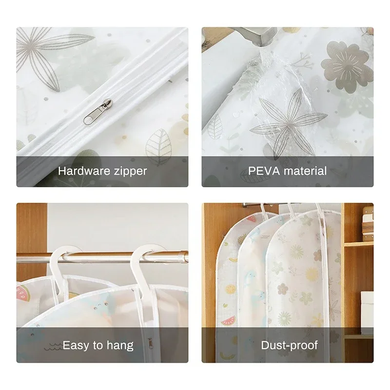 1-5PCS Clothes Dust Cover Transparent Thickened Washable Dust Bag PEVA Household Dust Cover Coat Suit Cover Hanging Clothes Bag