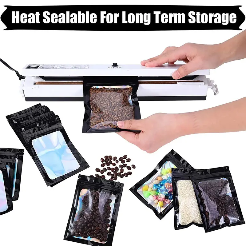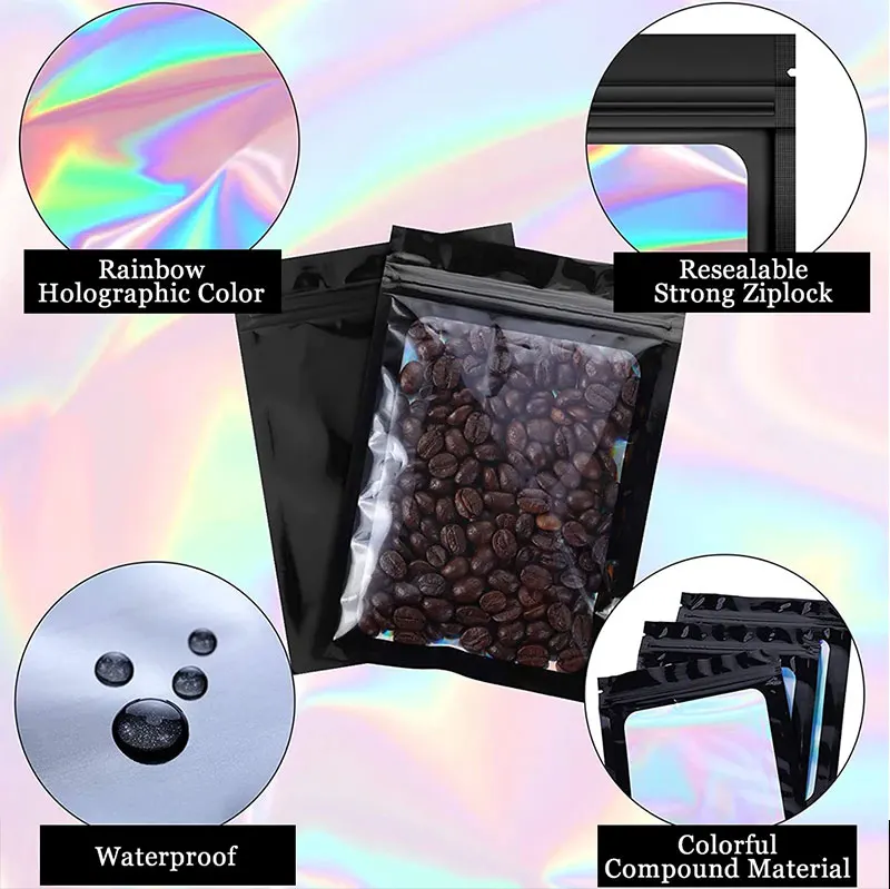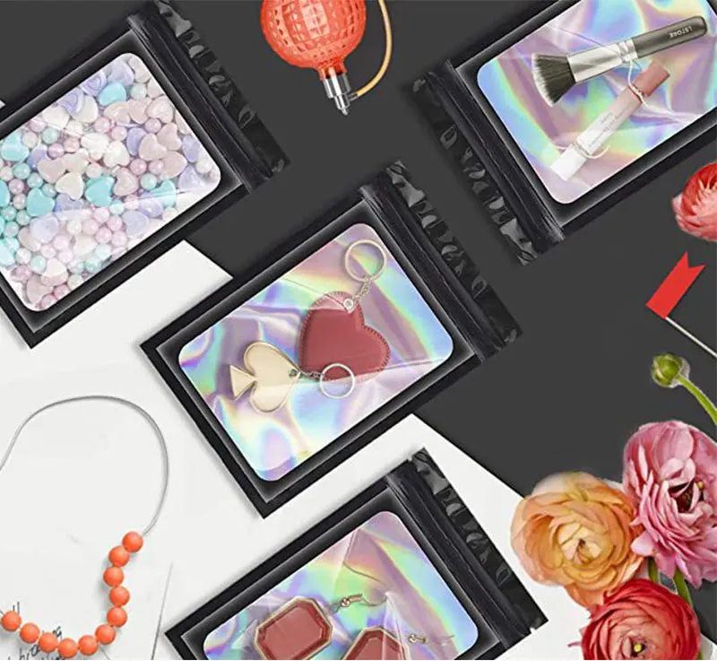 100pcs Translucent Holographic Rainbow Film Sealed Bag Earrings Ring Jewelry Phone Case Cosmetic Storage Reusable Laser Zip Lock Bag