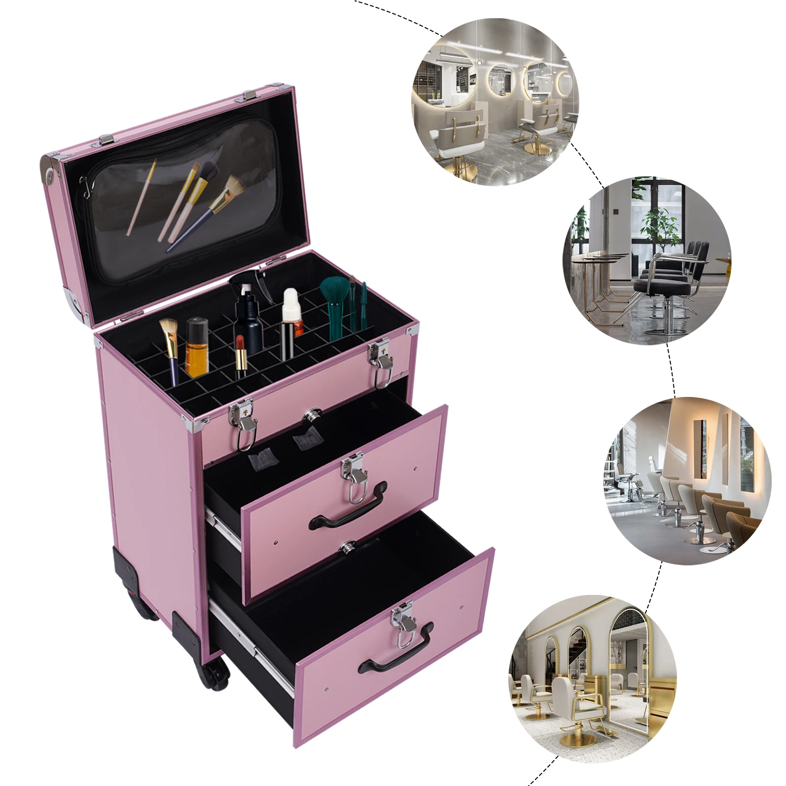 Easy to Move: This beauty salon luggage is equipped with universal wheels, a carrying handle and a drawbar. You can easily move it to the desired position, which is convenient for hair cutting, hair coloring, and working outside.