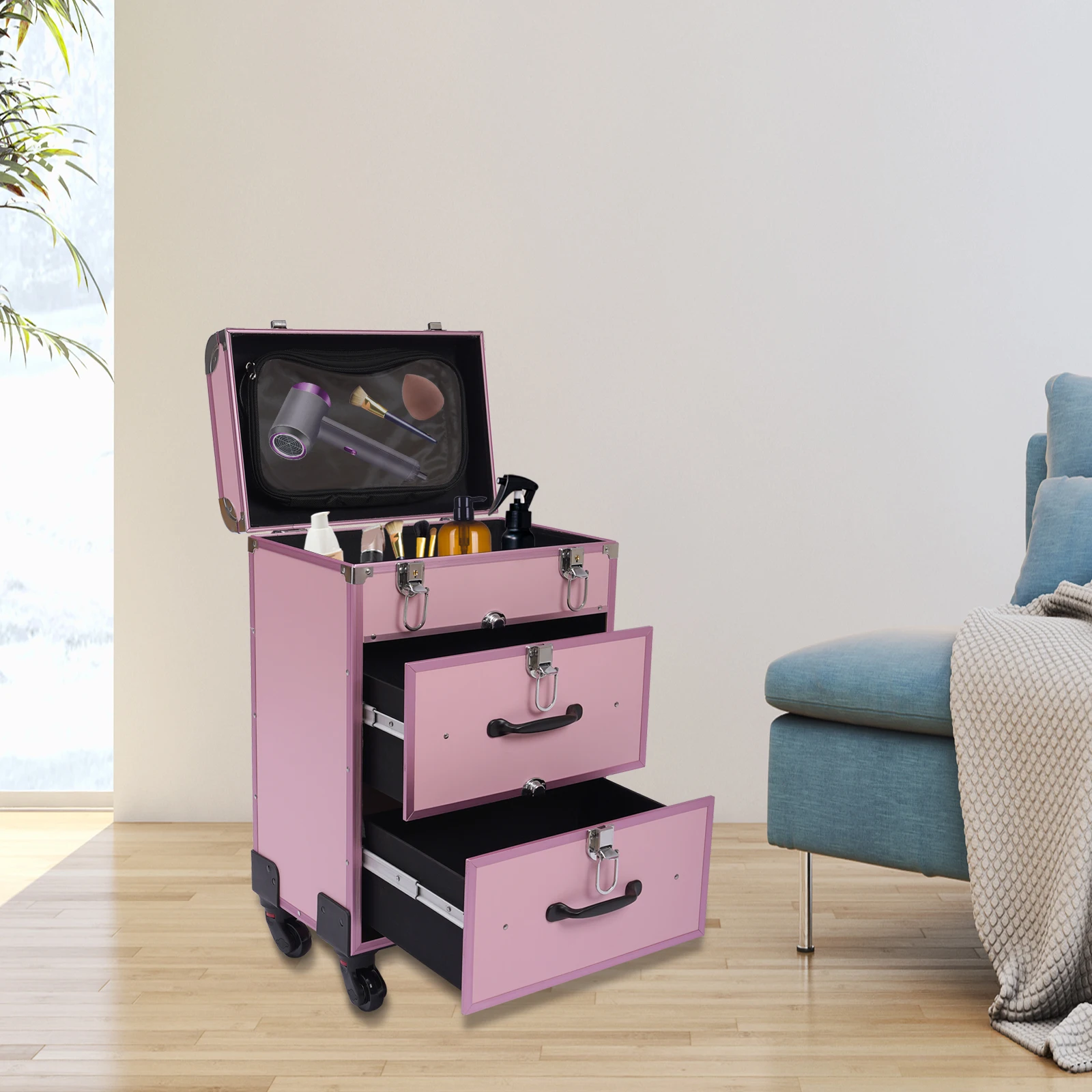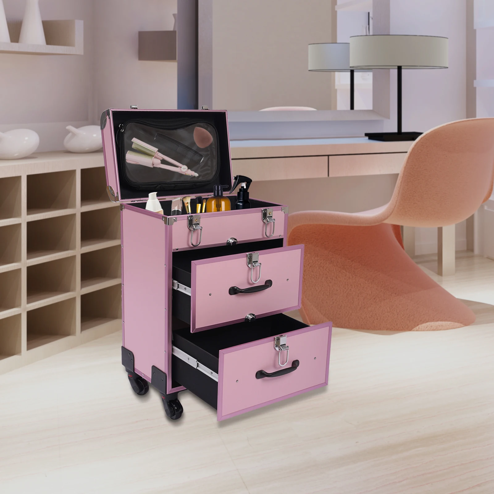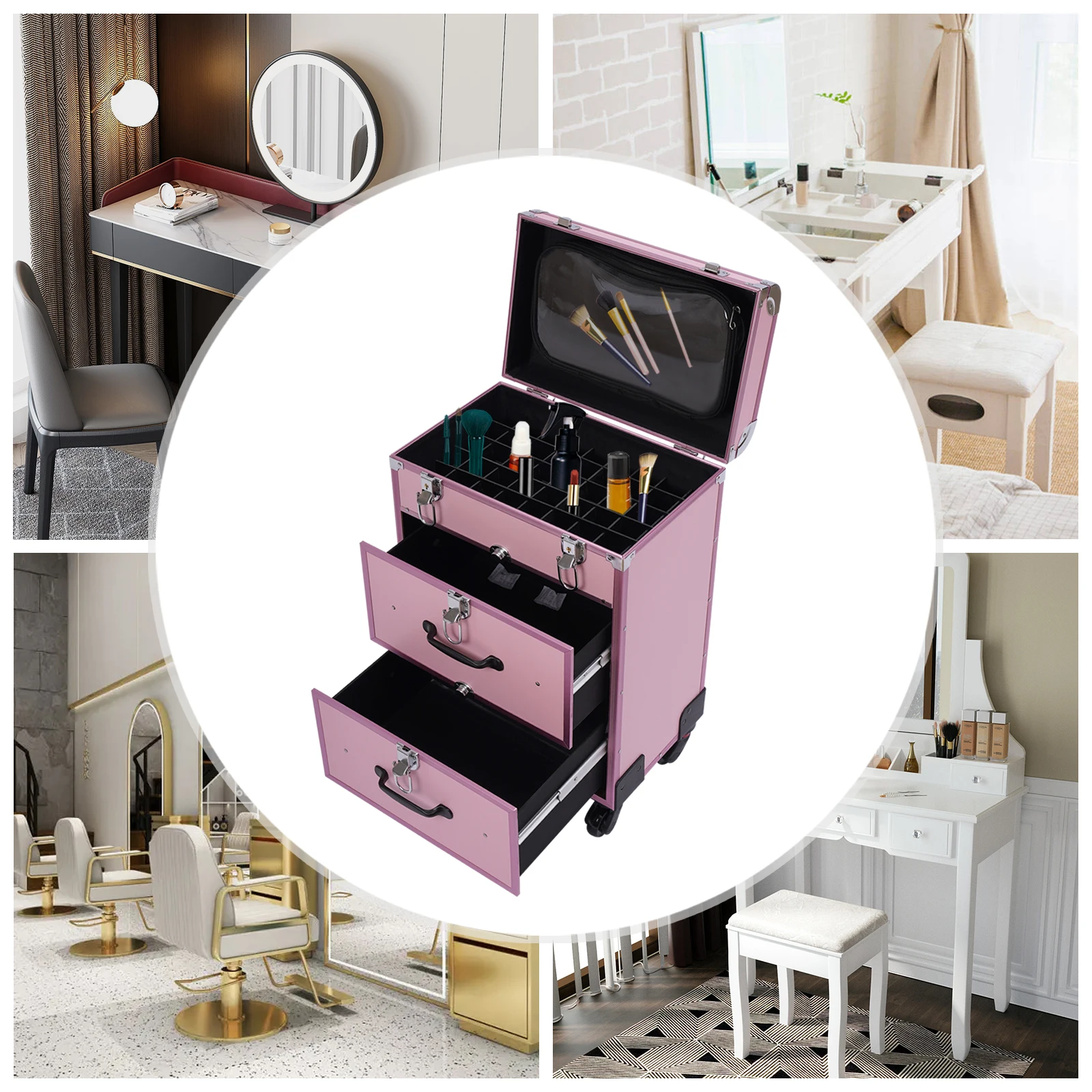 3-Tier Professional Rolling Makeup Case Large Cosmetic Trolley W/Locks For Nail Art Hair Styling Travel Storage