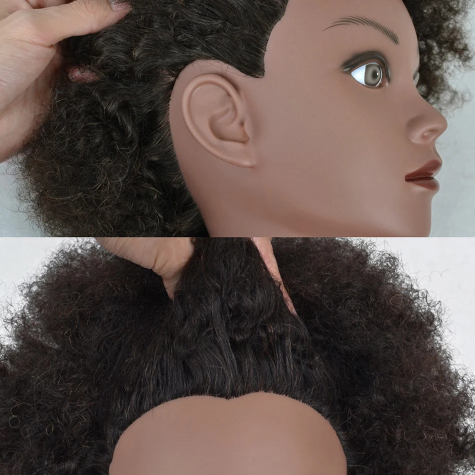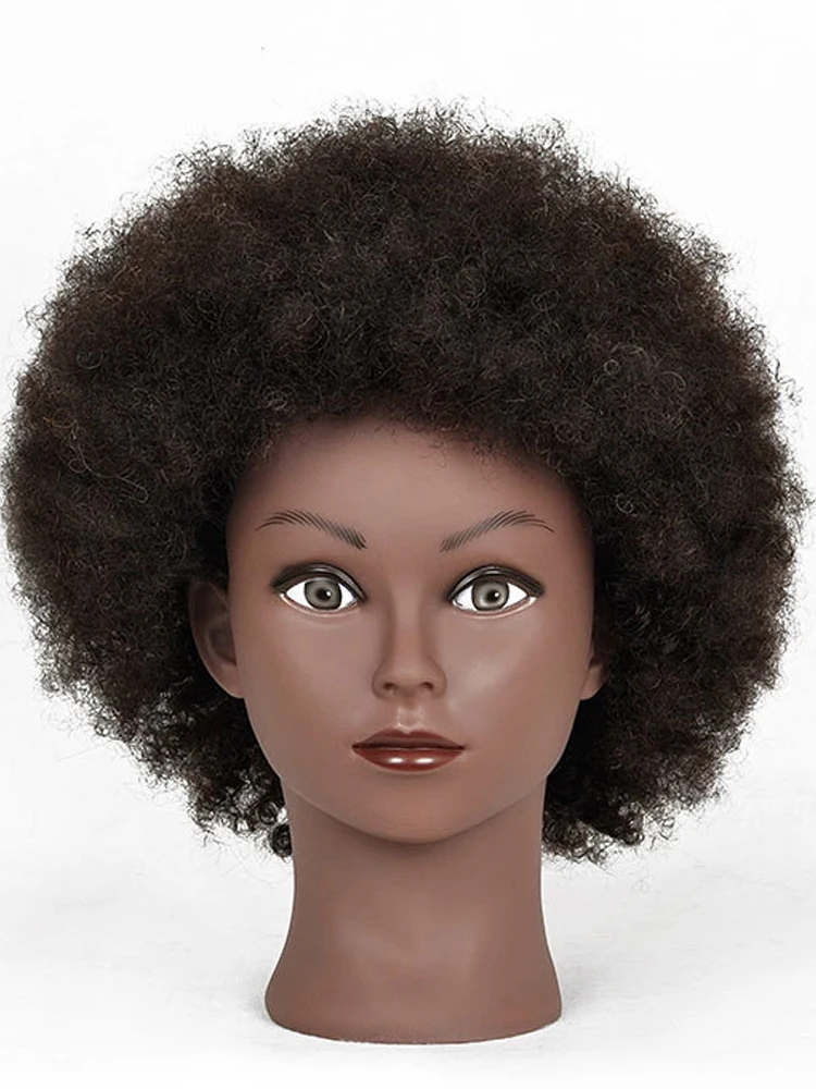 Afro Mannequin Head 8inches 100% Human Hair Traininghead Styling Head Braid Hair Dolls Head for Practicing Cornrows and Braids