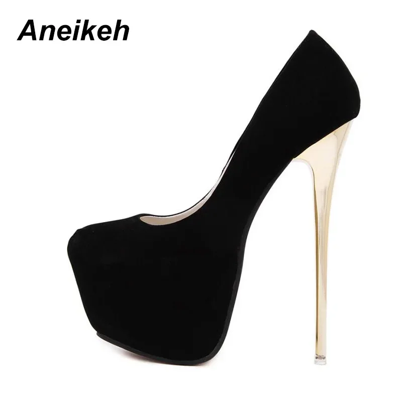 Aneikeh Big Size 41 42 43 44 45 Sexy Pumps Wedding Women Fetish Shoes High Heel Stripper Flock Pumps 16 cm Zapatos Mujer