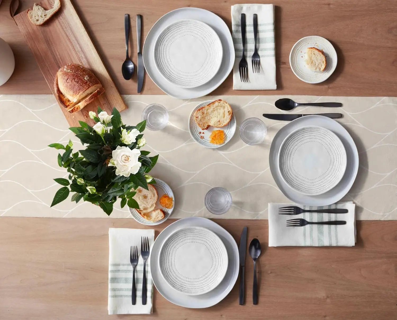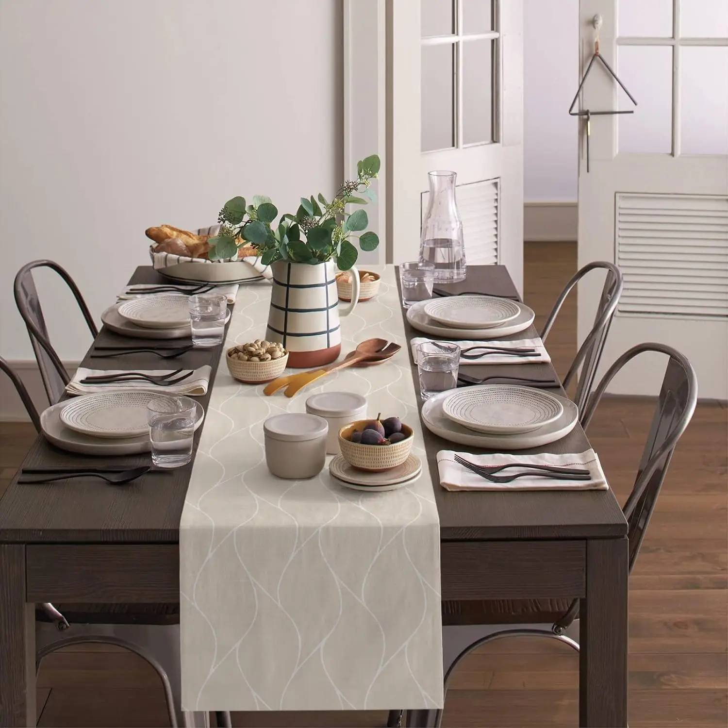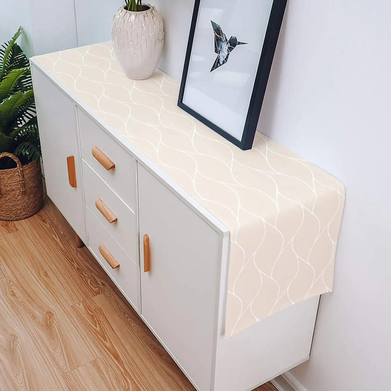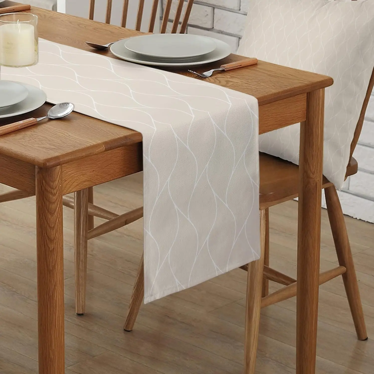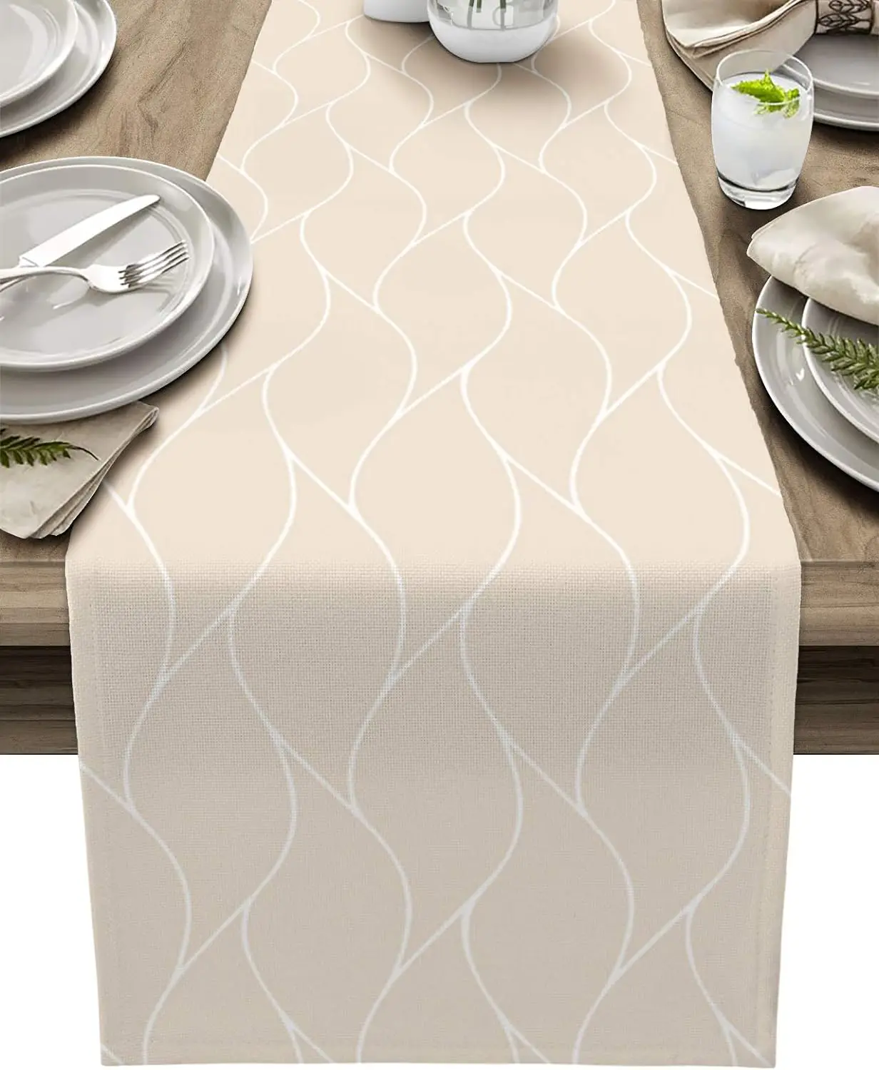 Beige Linen Table Runners Modern Abstract Wave Stripe Dresser Scarf Table Decor Washable Farmhouse Holiday Dining Table Decor