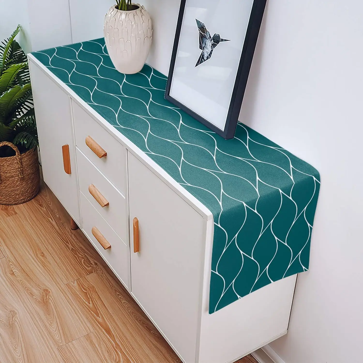 Be the first to review “Beige Linen Table Runners Modern Abstract Wave Stripe Dresser Scarf Table Decor Washable Farmhouse Holiday Dining Table Decor”