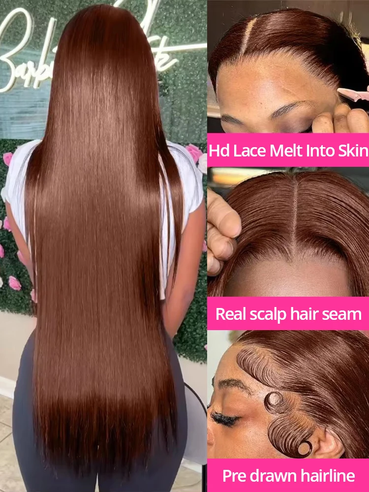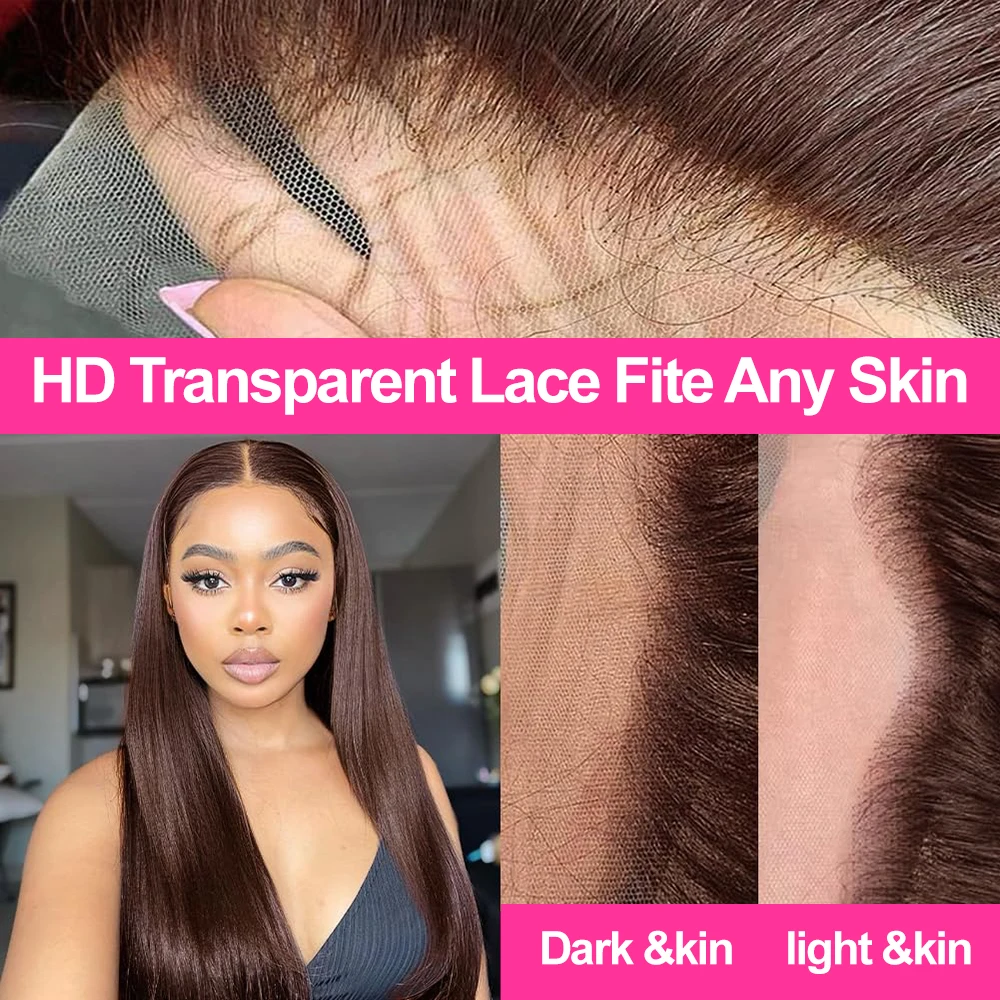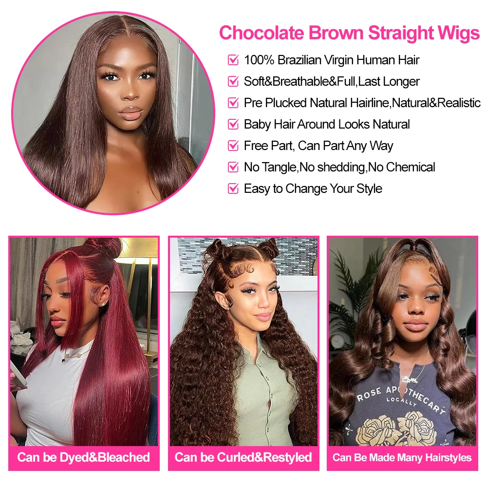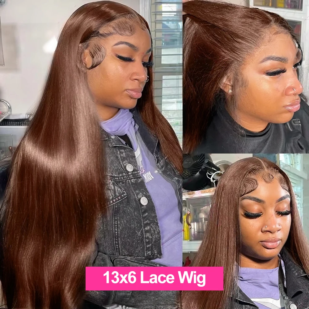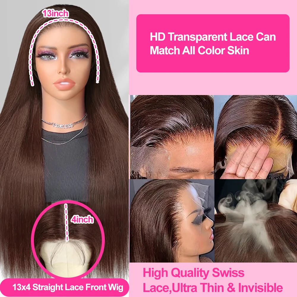 13×6 13×4 Chocolate Brown Human Hair wigs Straight Lace Front Wig