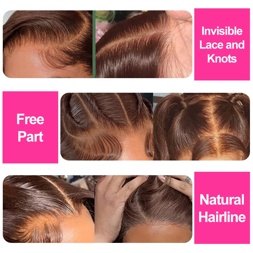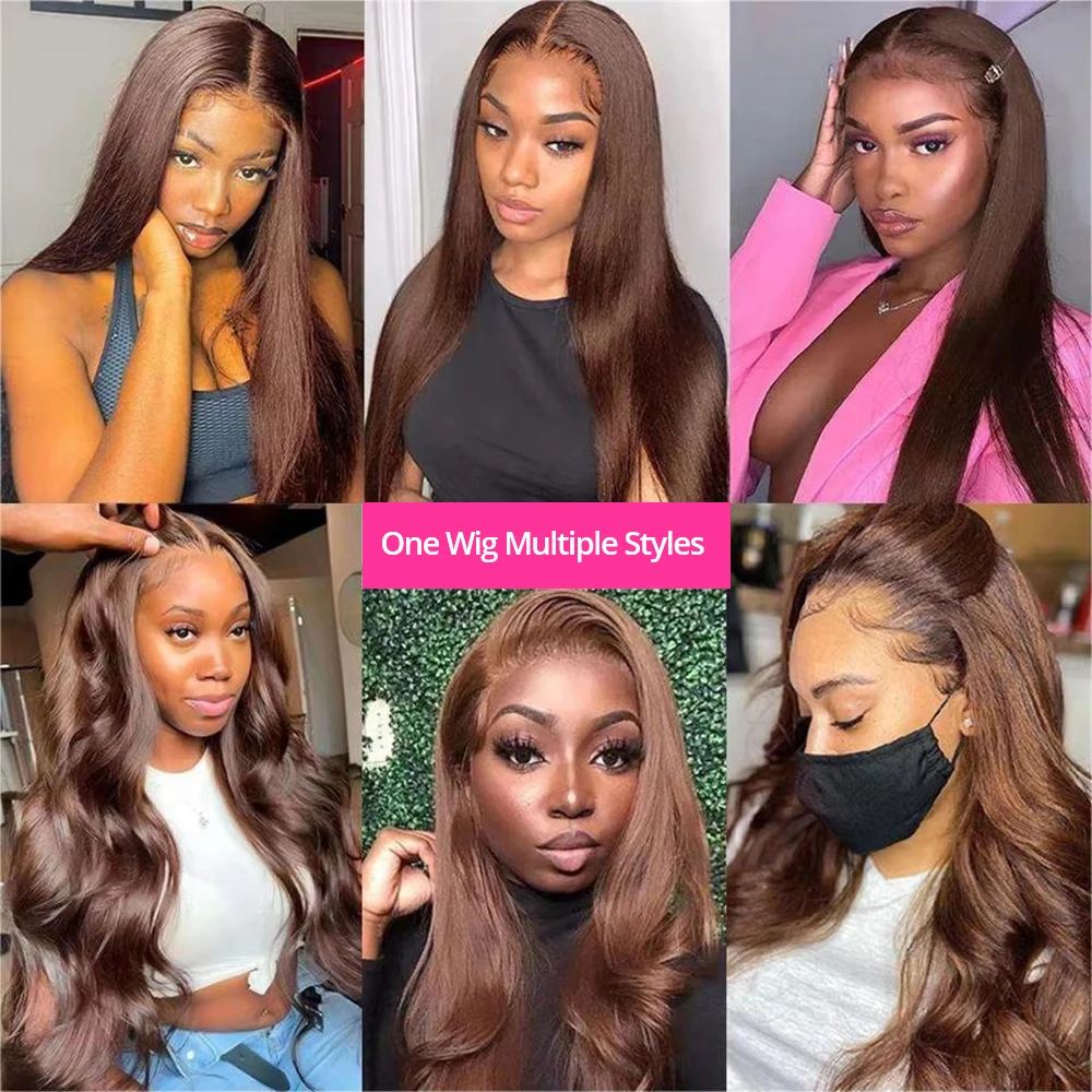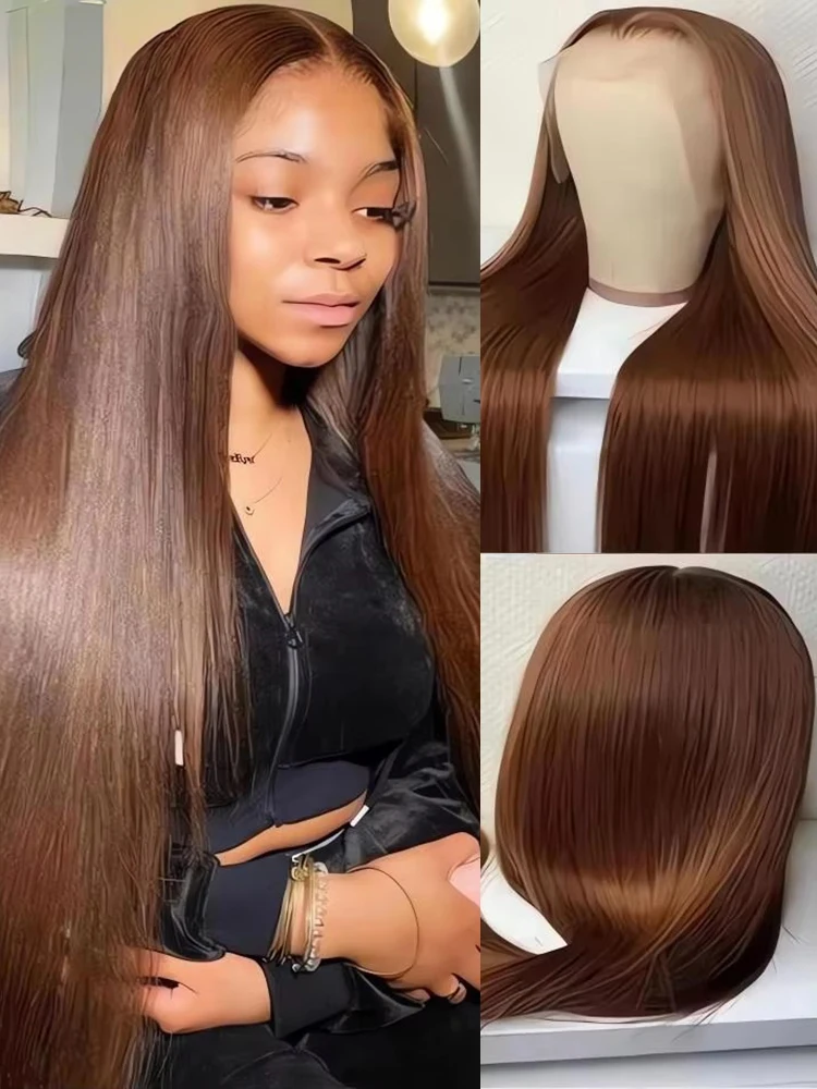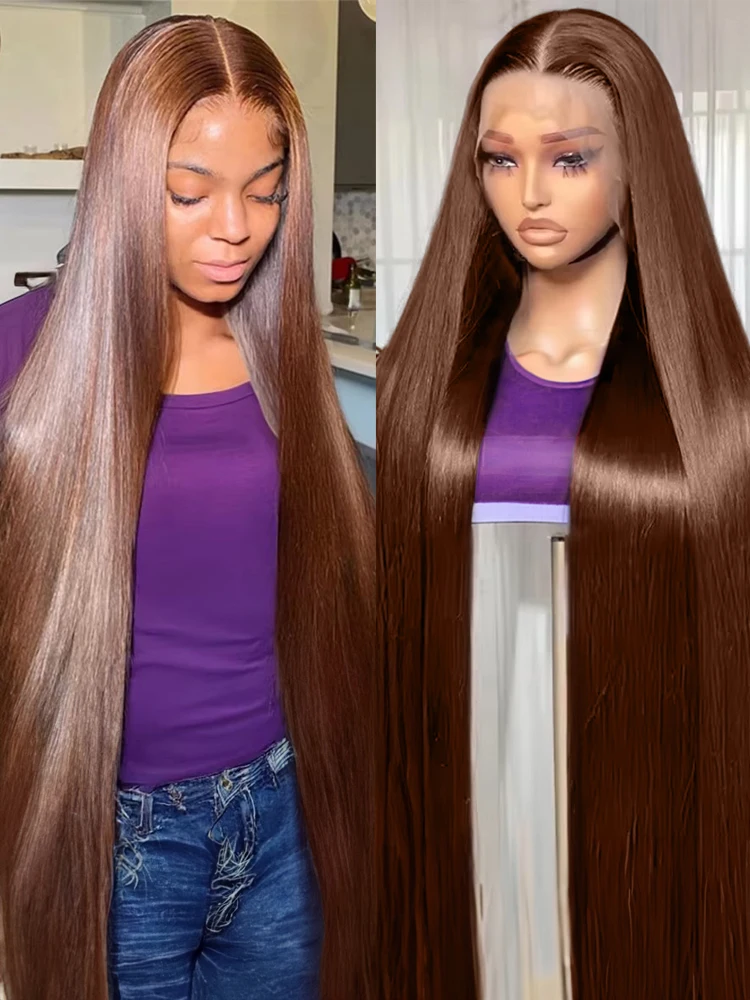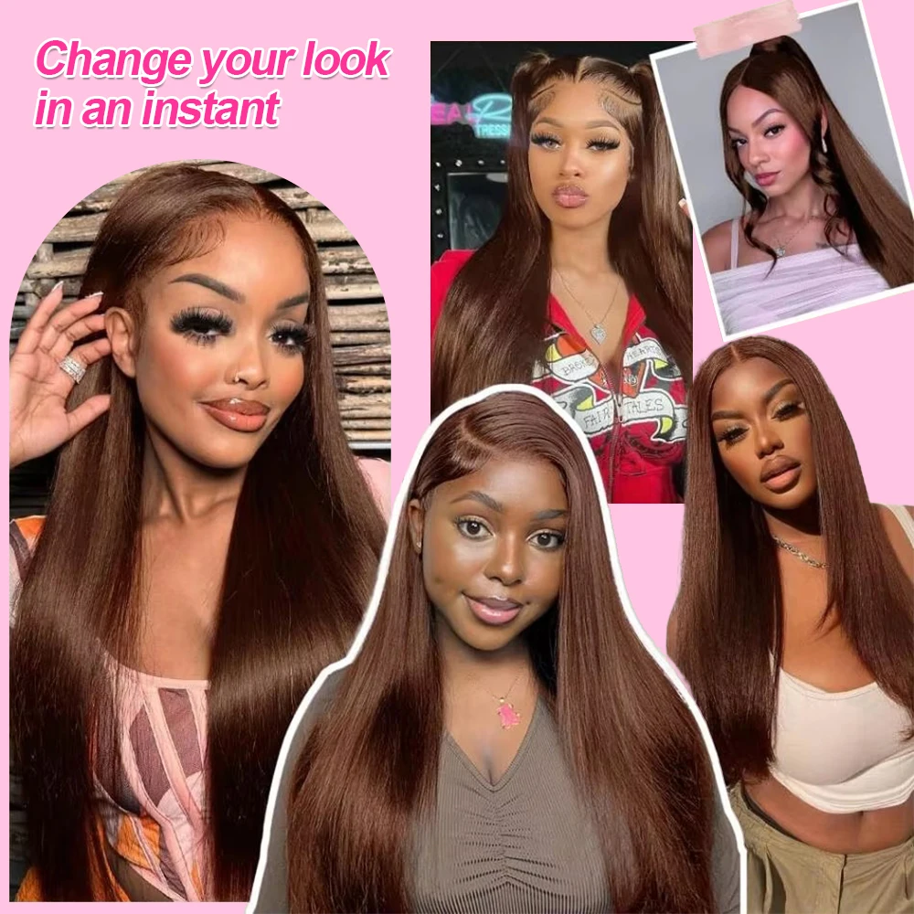 13×6 13×4 Chocolate Brown Human Hair wigs Straight Lace Front Wig