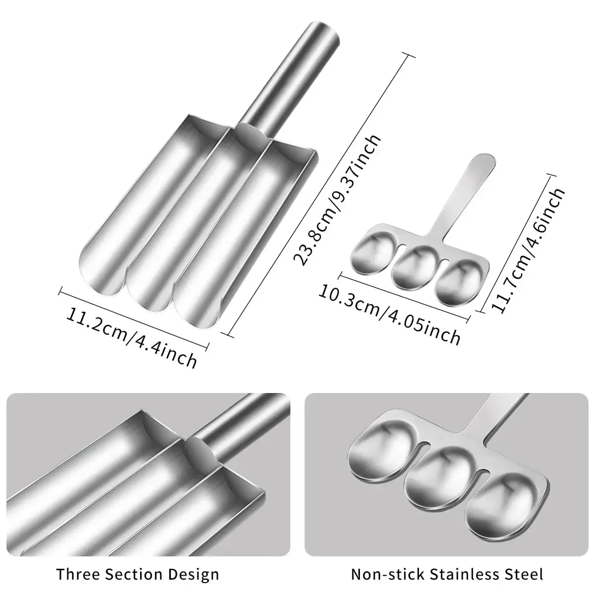 【Creative Kitchen Triple Meatball Maker】: Crafted from high-quality 304 stainless steel, this meatball scoop ball maker allows you to effortlessly create three beautifully-shaped meatballs at once, quick and mess-free!