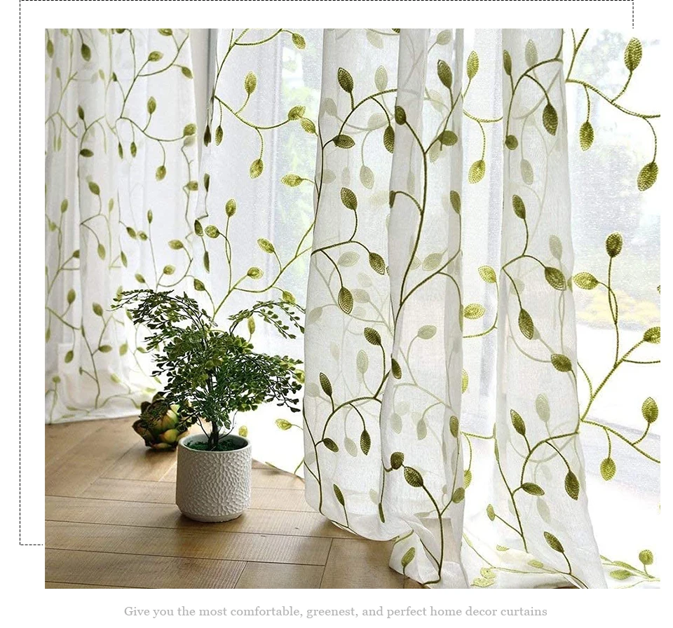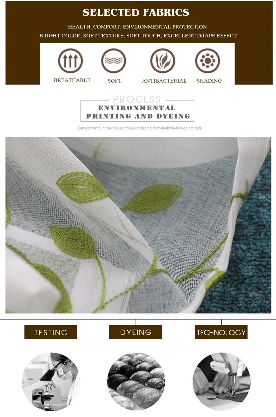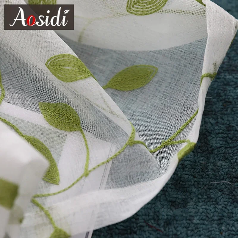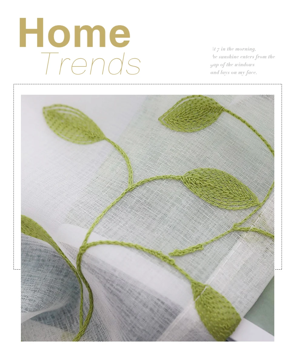Embroidered Green Tulle Sheer Curtains for Living Room Bedroom Children Curtain for Window Ready-made Drapes Cortinas Rideaux
