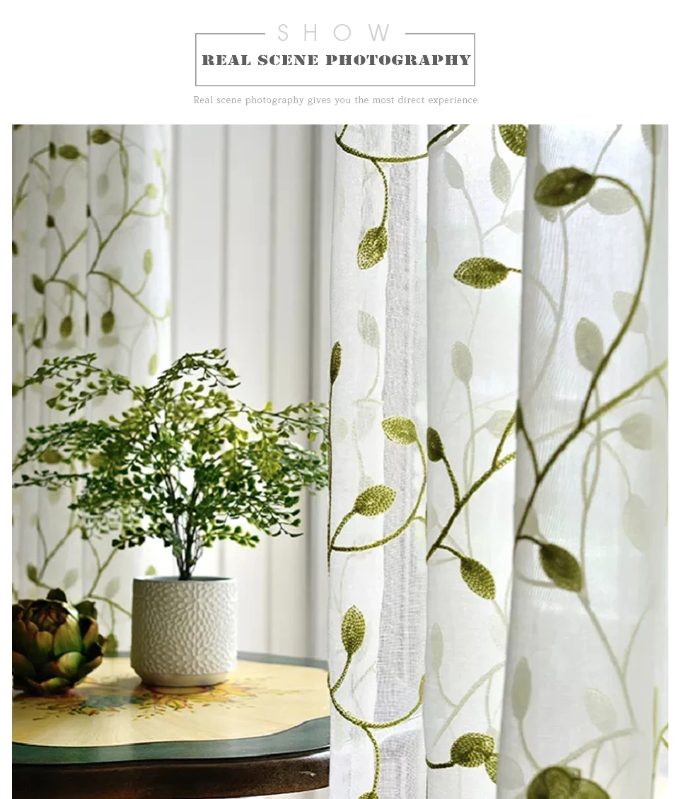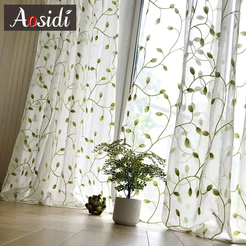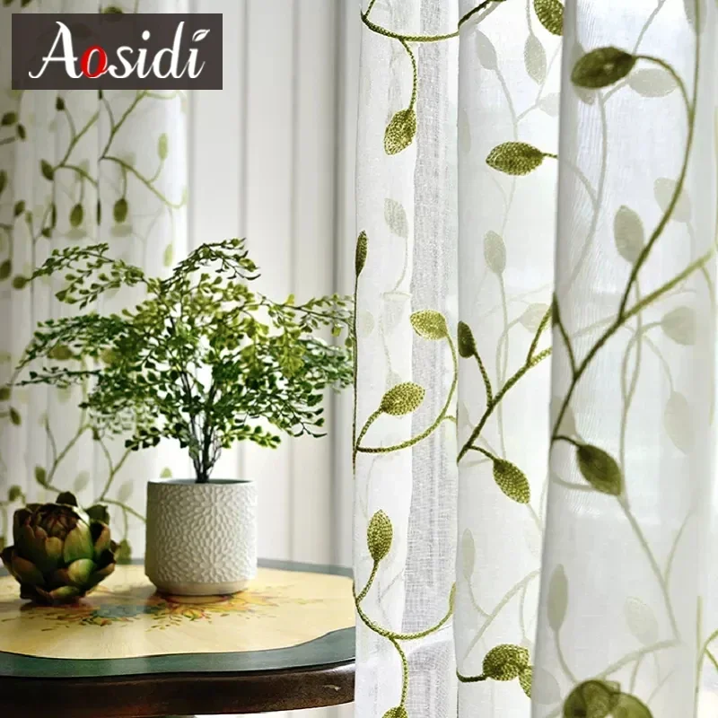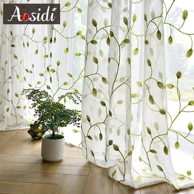 Embroidered Green Tulle Sheer Curtains for Living Room Bedroom Children Curtain for Window Ready-made Drapes Cortinas Rideaux