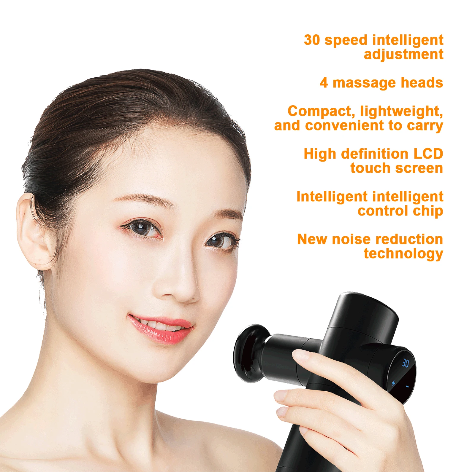 Ergonomic handheld design, lightweight and portable, let you enjoy deep muscle massage anytime and anywhere. Low noise design, won’t disturb others. Suitable for fitness crowd, office staff, parent and elders, etc.