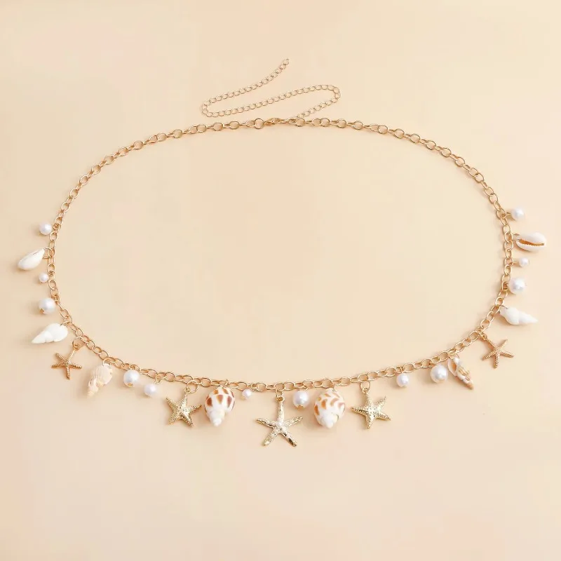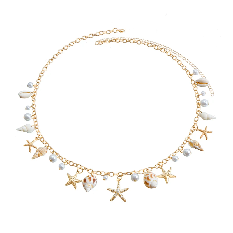 Fashion Natural Shell Conch Sea Star Imitation Pearl Tassel Pendant Waist Chain for Women Sexy Boho Summer Chain Belt Necklace