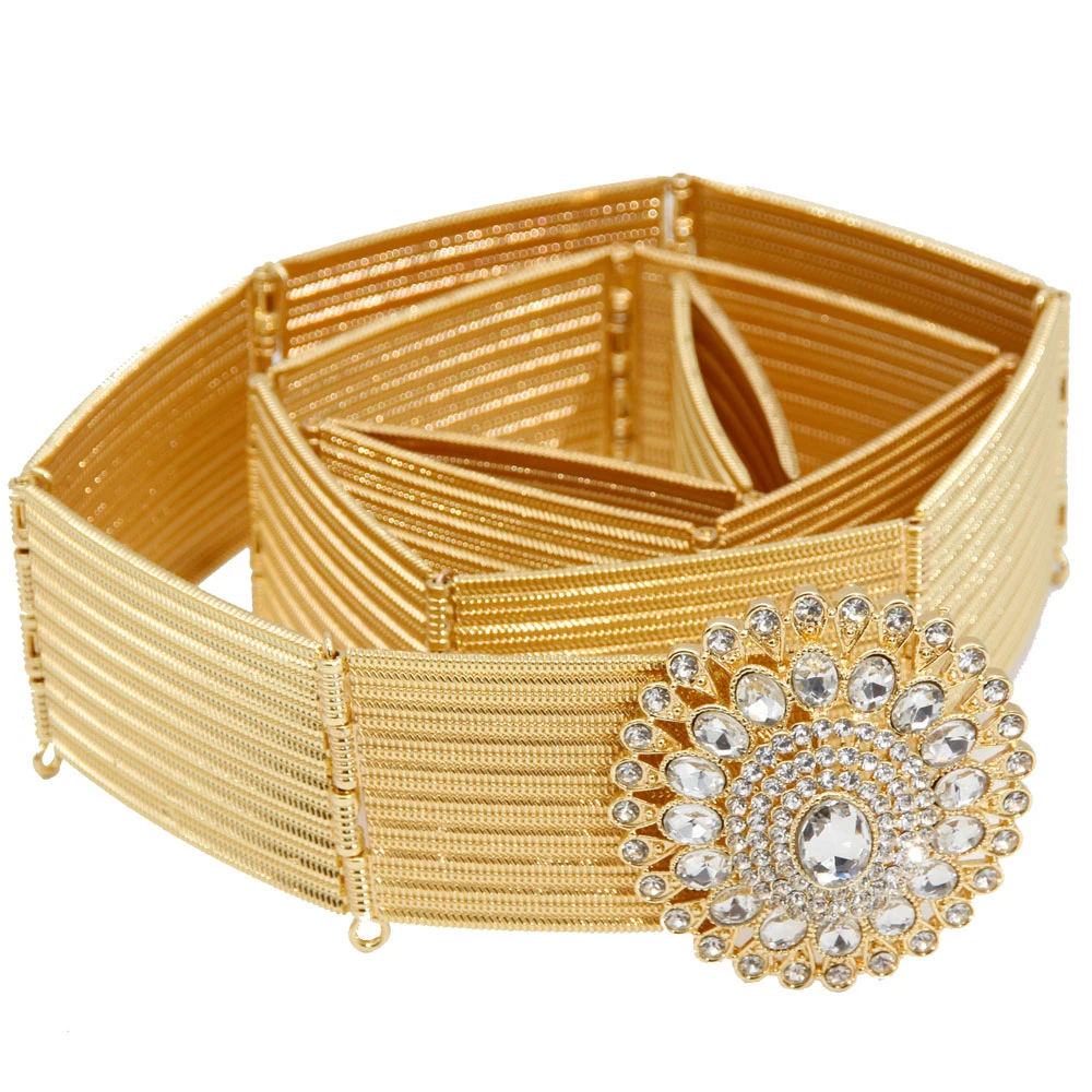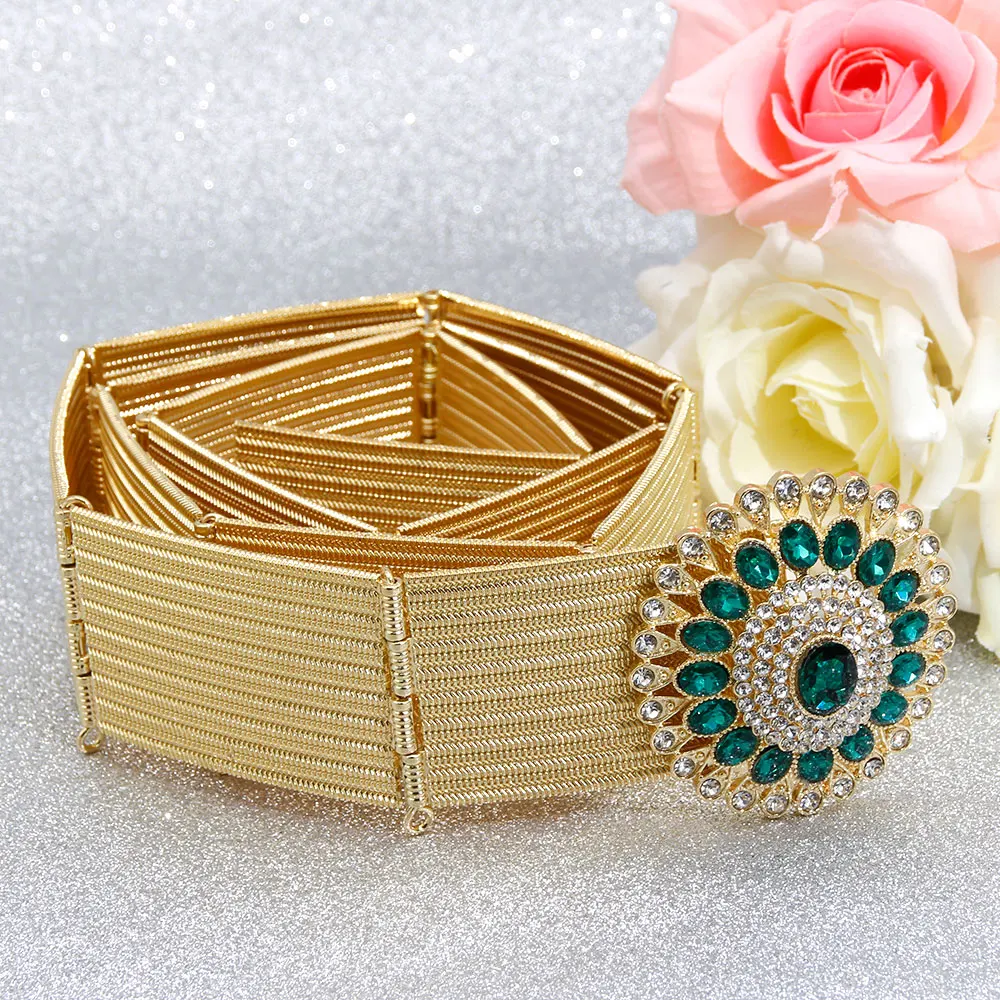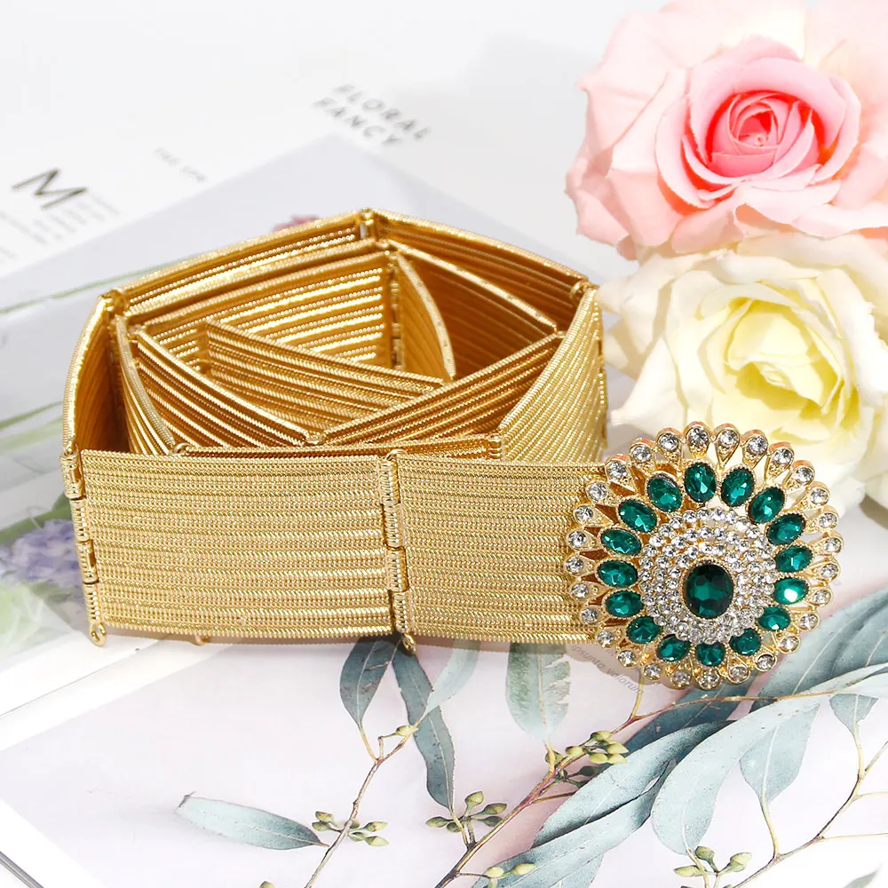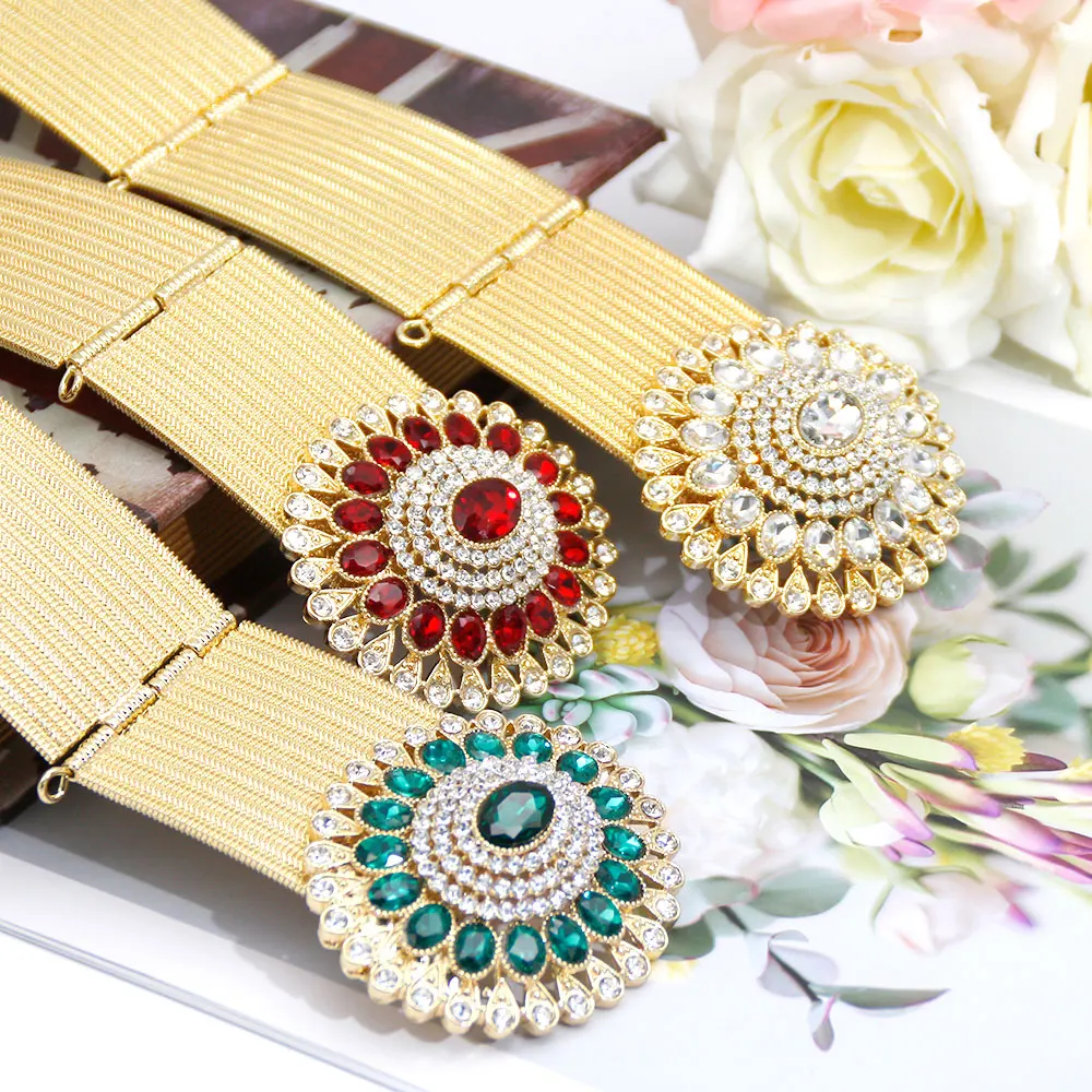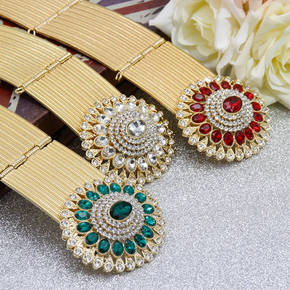 Gilding Morocco Caftan Belt Arabic Women Golden Belt Crystal Algeria Bride Wedding Jewelry Adjustable Length Abaya Waist Chain