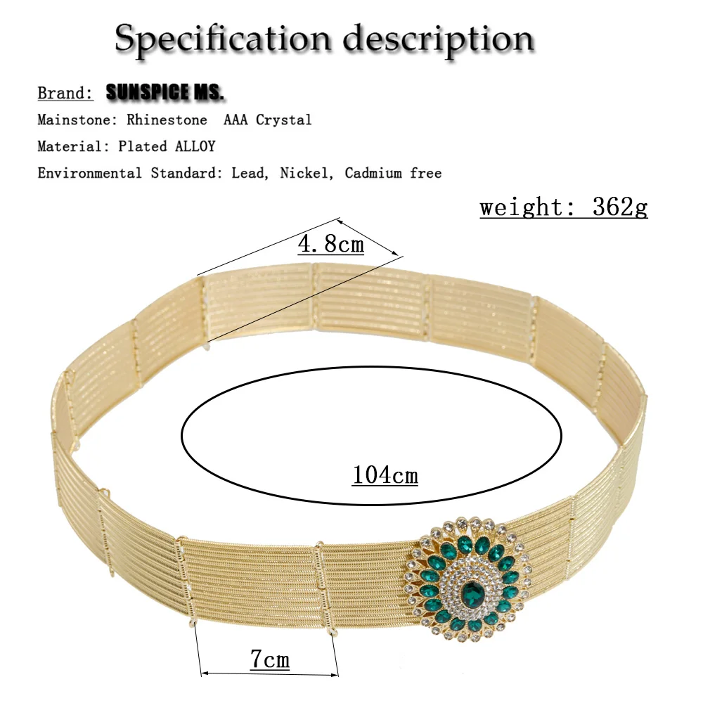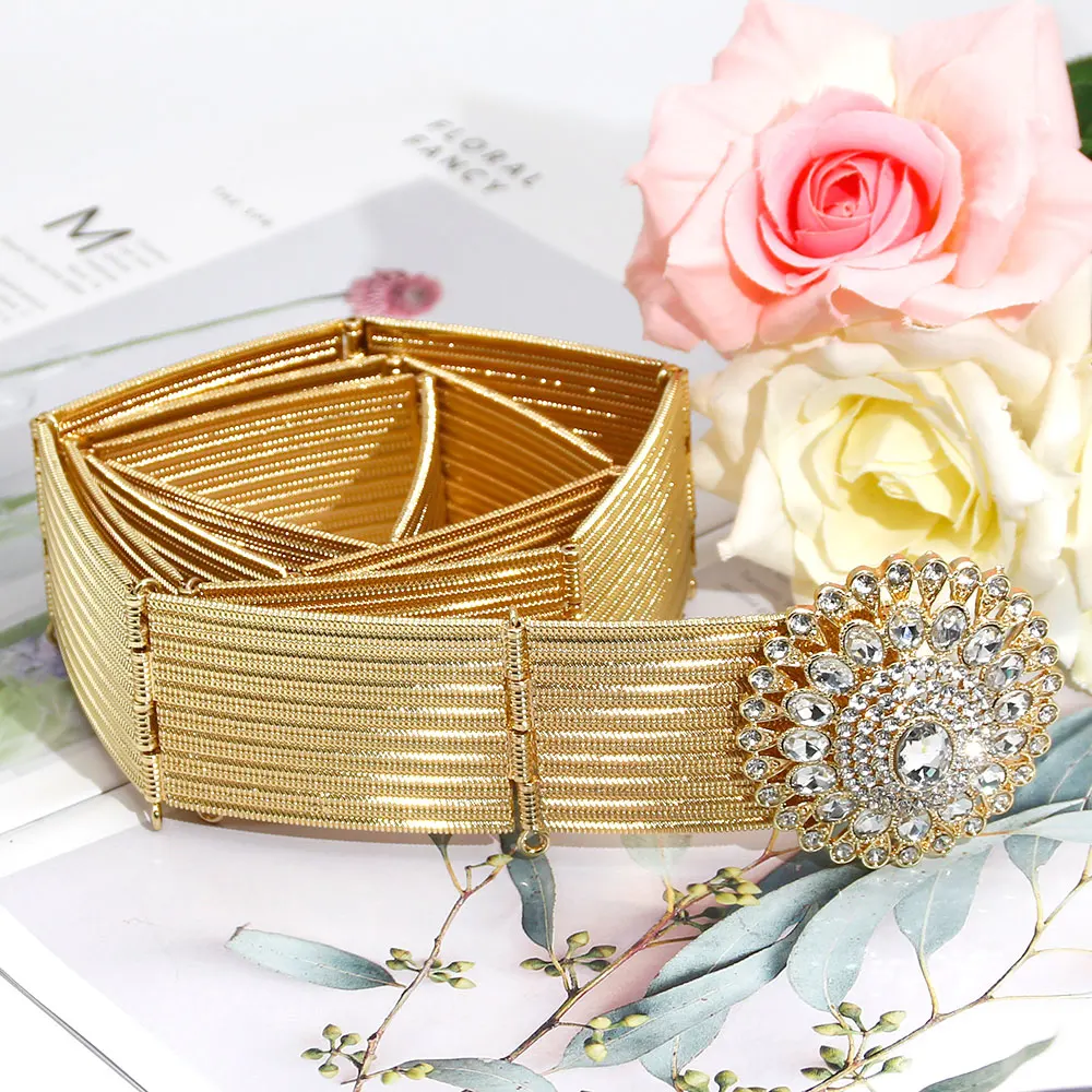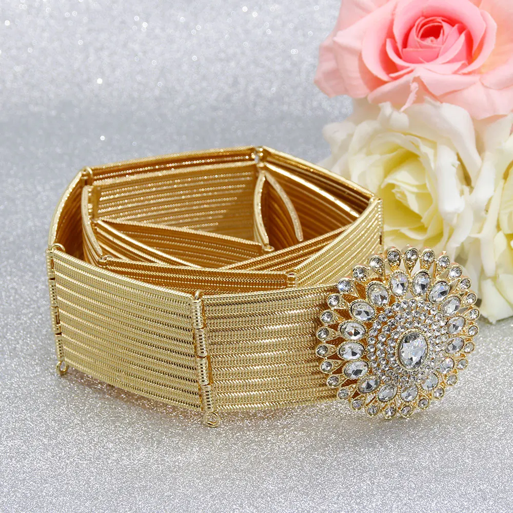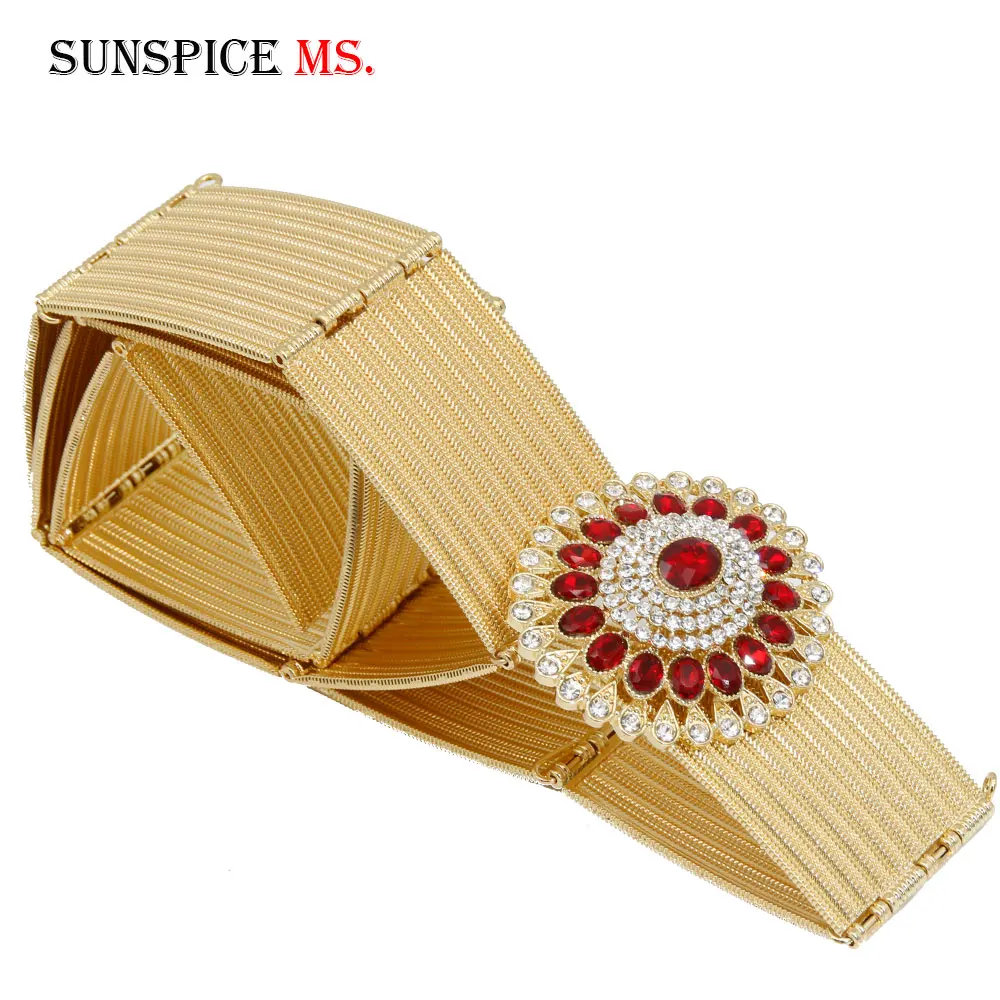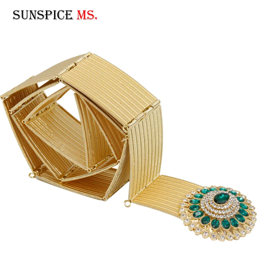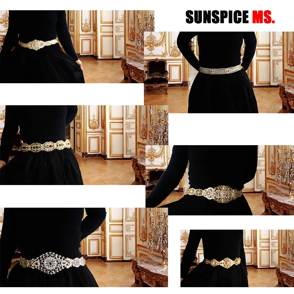 Gilding Morocco Caftan Belt Arabic Women Golden Belt Crystal Algeria Bride Wedding Jewelry Adjustable Length Abaya Waist Chain
