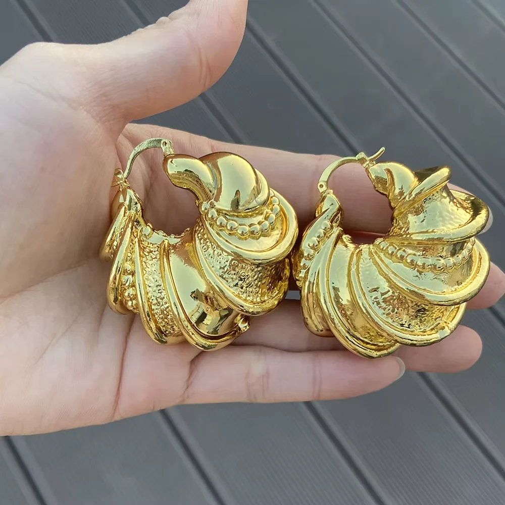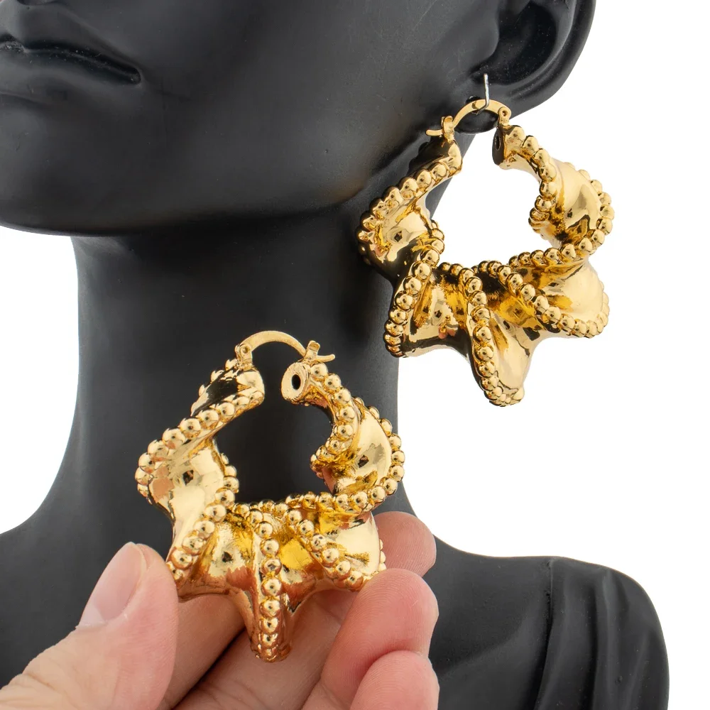 Hoop Earrings Flower Shaped Copper Gold Color Copper Drop Earrings For Woman 2023 Fashion Party Girls Jewelry Accessory