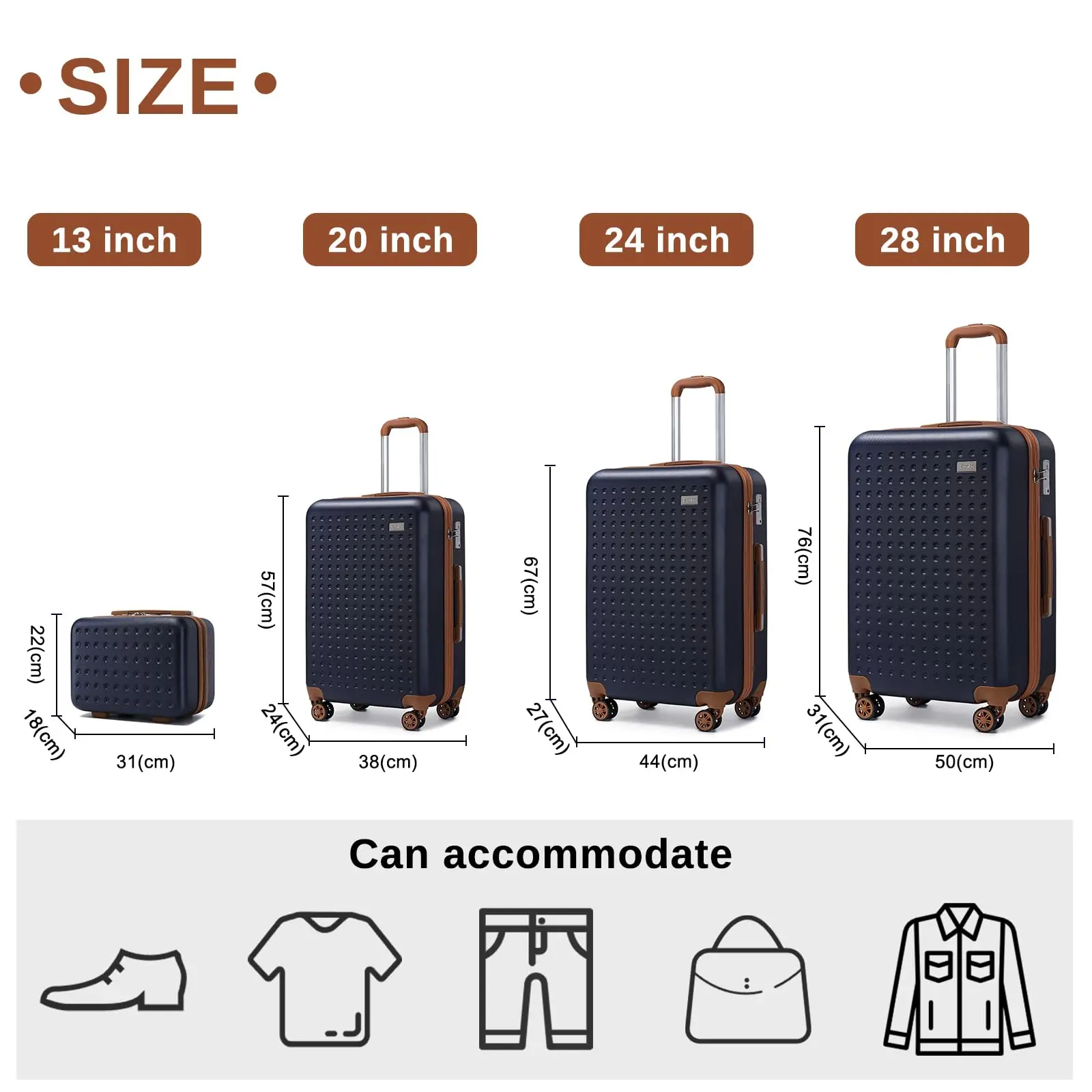 The case is available in several sizes, which are suitable for most airlines: