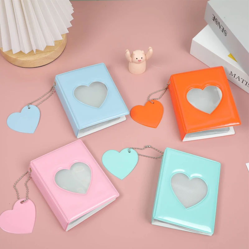 Heart hollow 3-inch photo album,pvc material,dustproof and waterproof,protect the inner pages.The inner page adopts a side-insertion design,which is waterproof and anti-fouling.Love pendant,cute and sweet.A variety of different colors are available.The inner page has 16 pages and can hold 32 photos.
