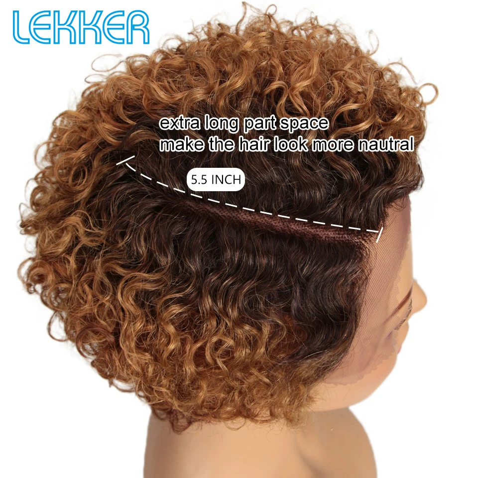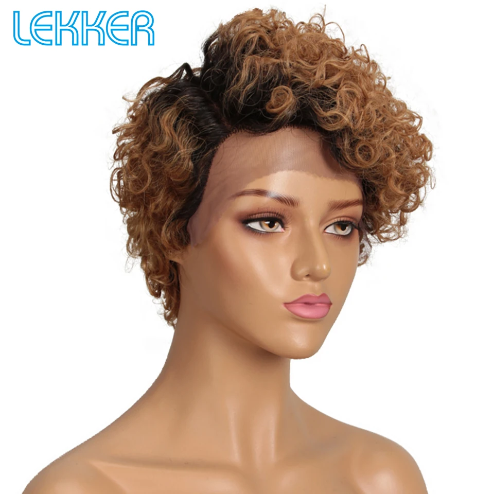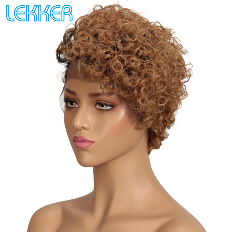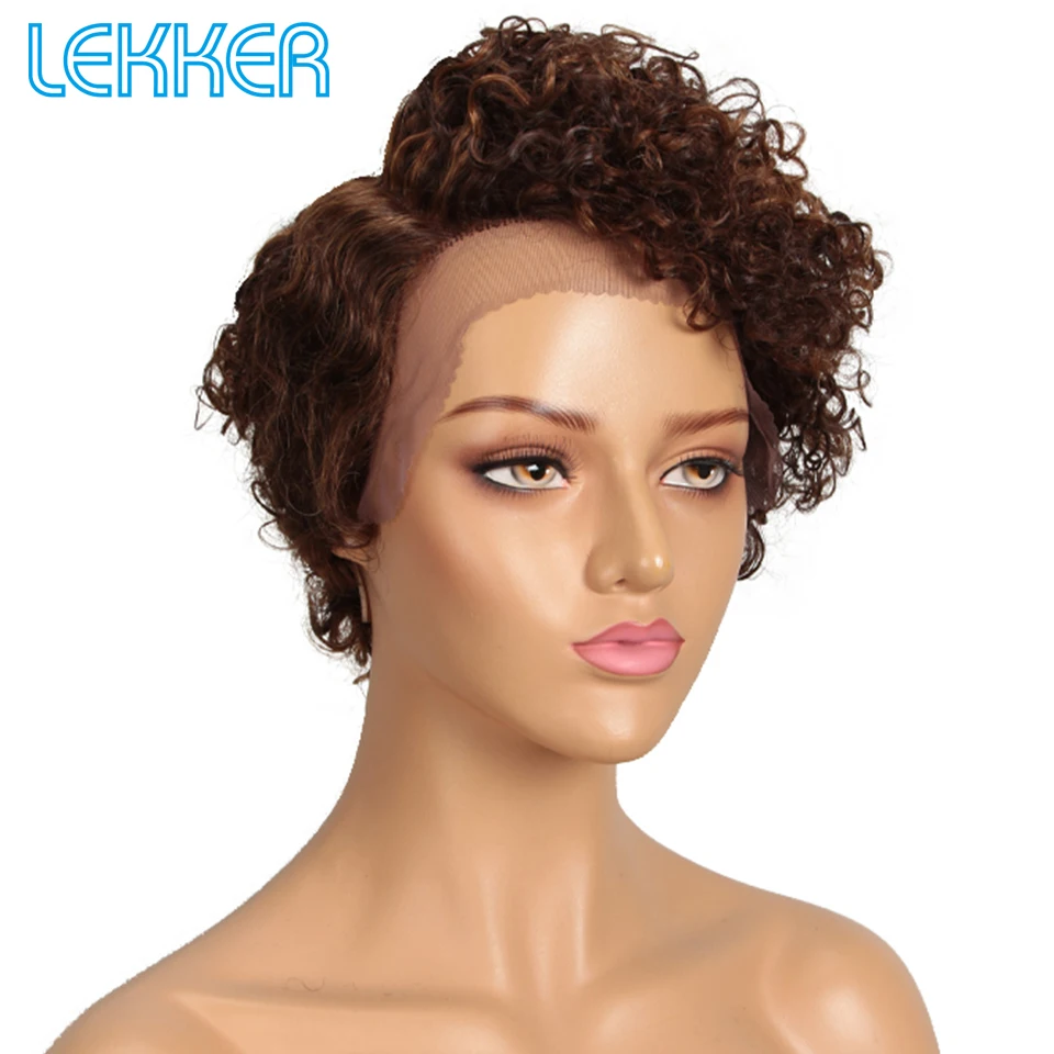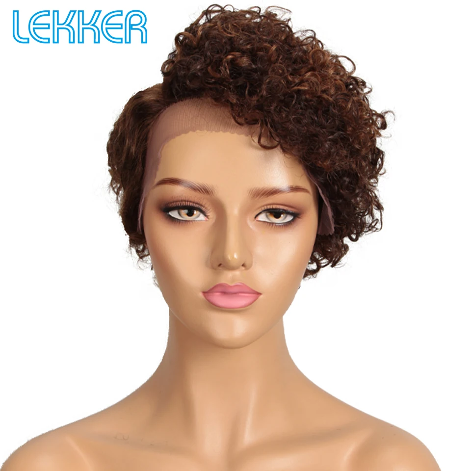 Lekker Ombre Brown Blonde Short Pixie Curly Bob Side Part Lace Front 100% Human Hair Wigs For Women Glueless Brazilian Remy Hair