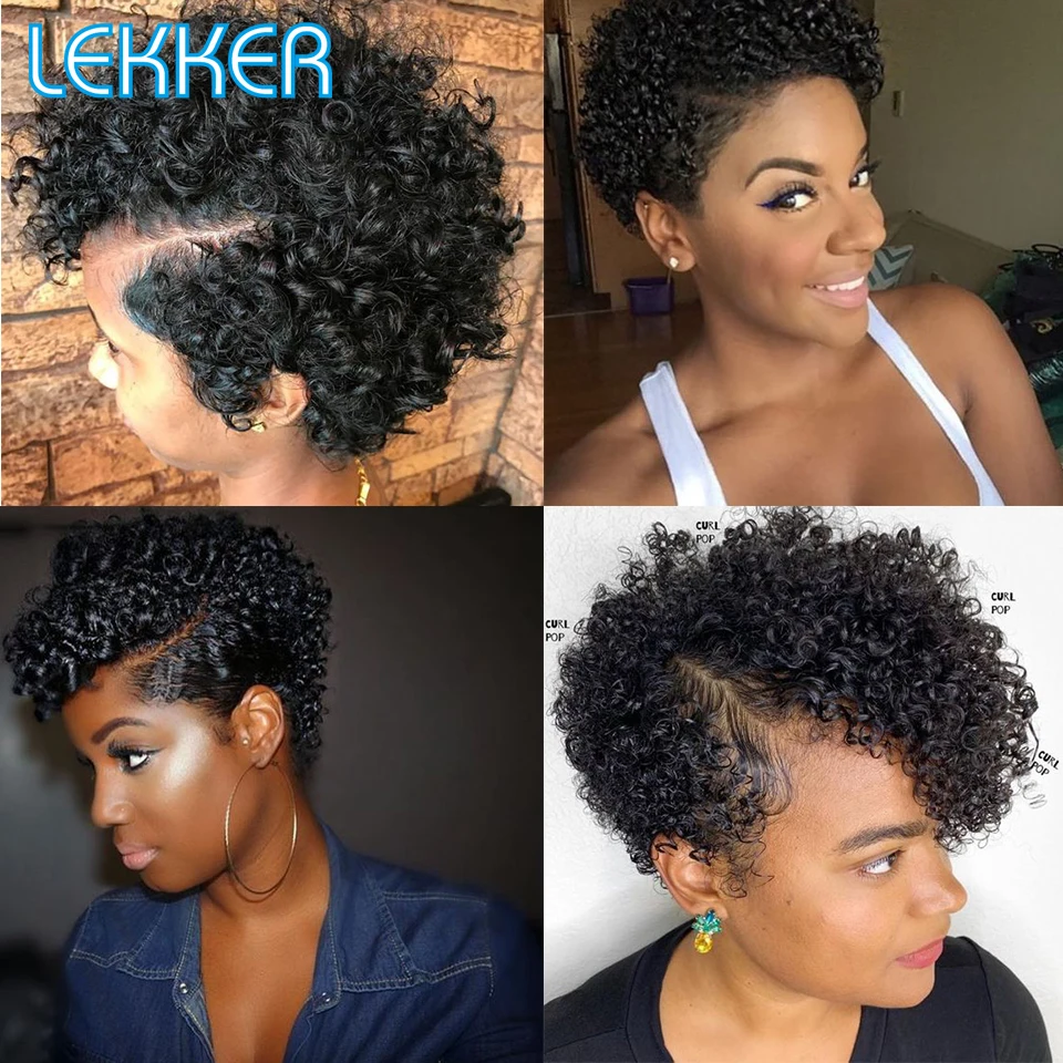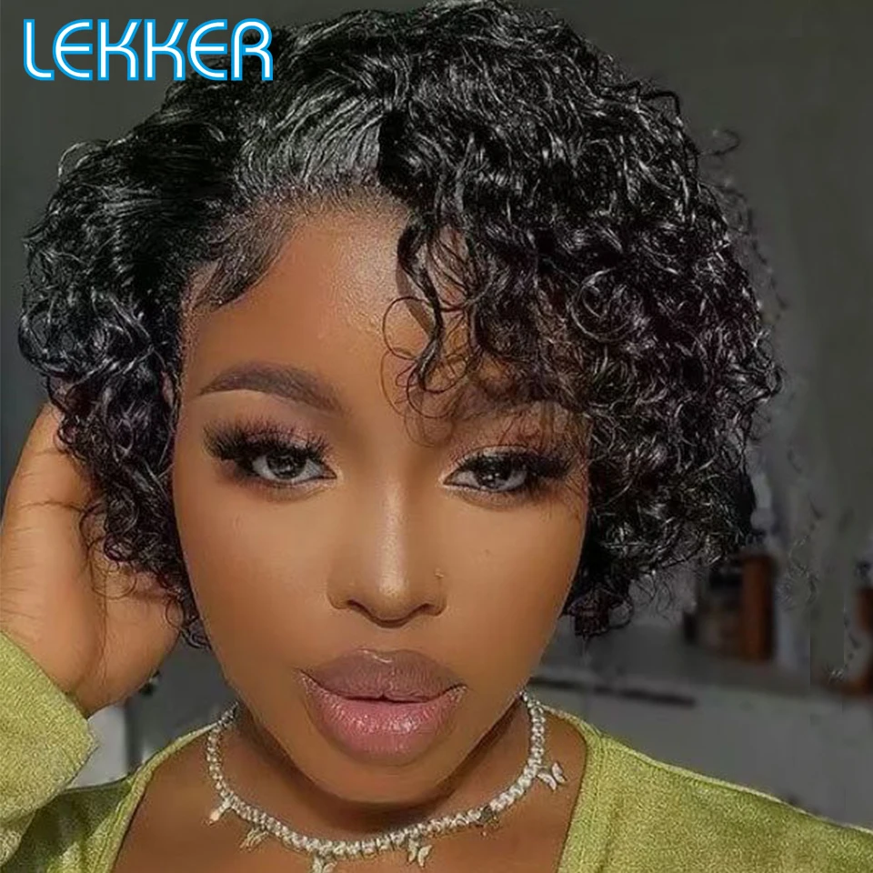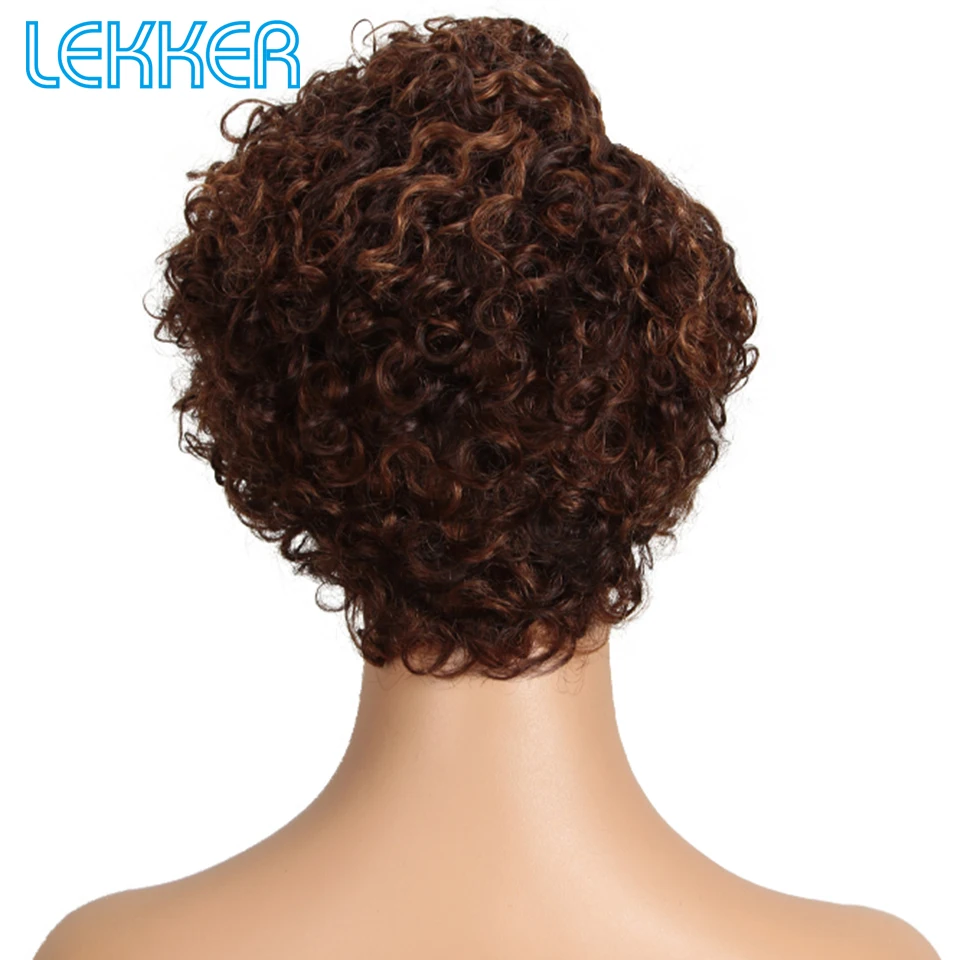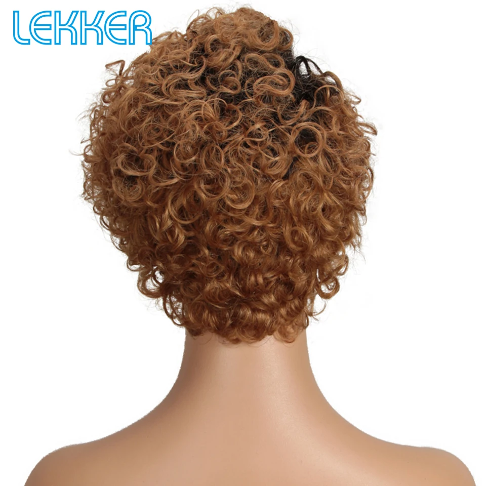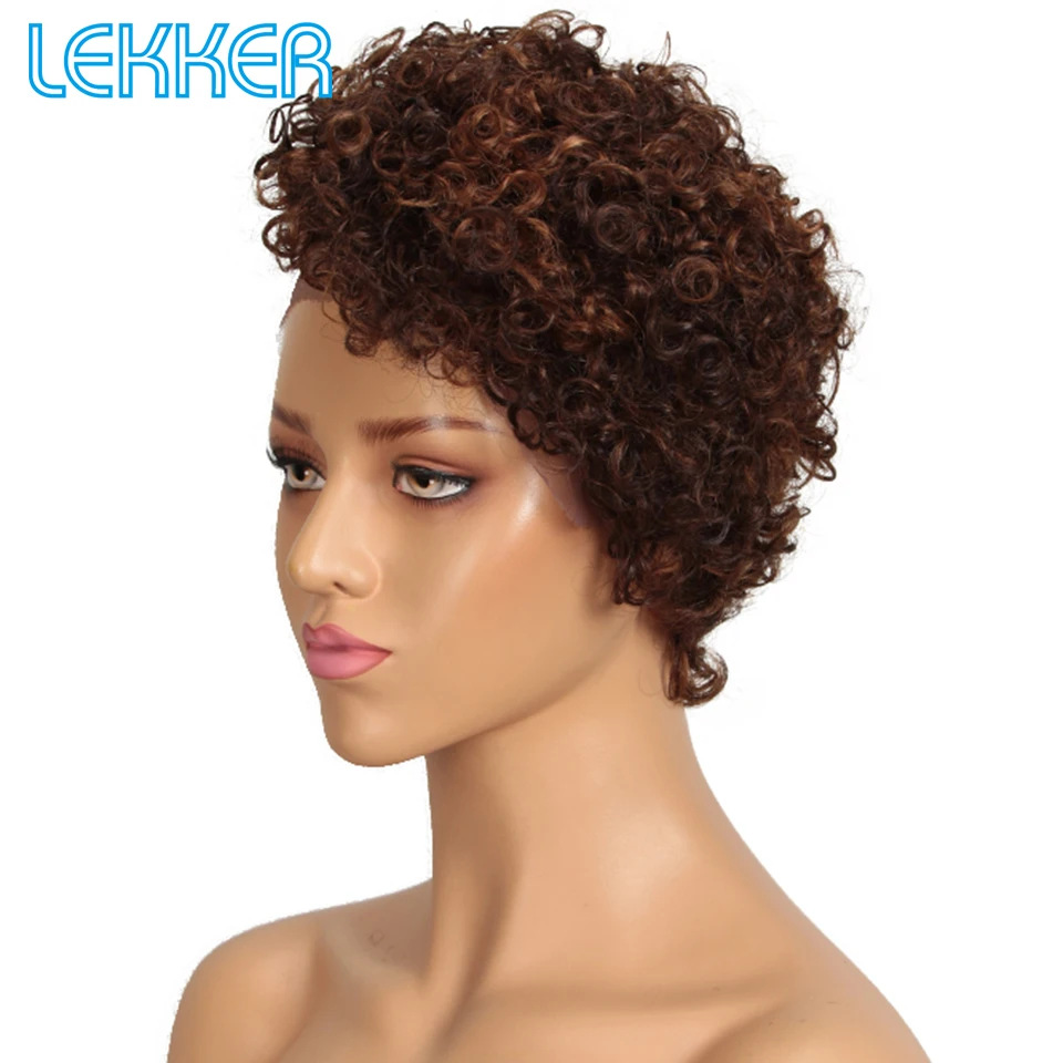 Lekker Ombre Brown Blonde Short Pixie Curly Bob Side Part Lace Front 100% Human Hair Wigs For Women Glueless Brazilian Remy Hair