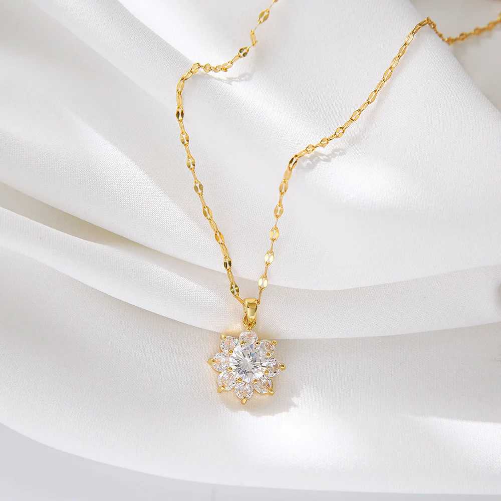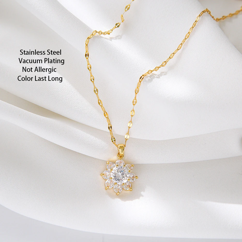 Top Luxury Shining Zircon Crystal Sunflower Pendant Necklaces For Women Korean Fashion Stainless Steel Jewelry Female Chain