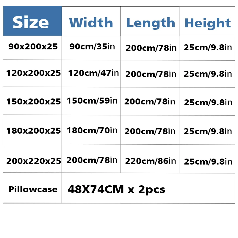 120x200x25cm150x200x25cm180x200x25cm200x220x25cm48X74cm pillowcase-290x200x25cm
