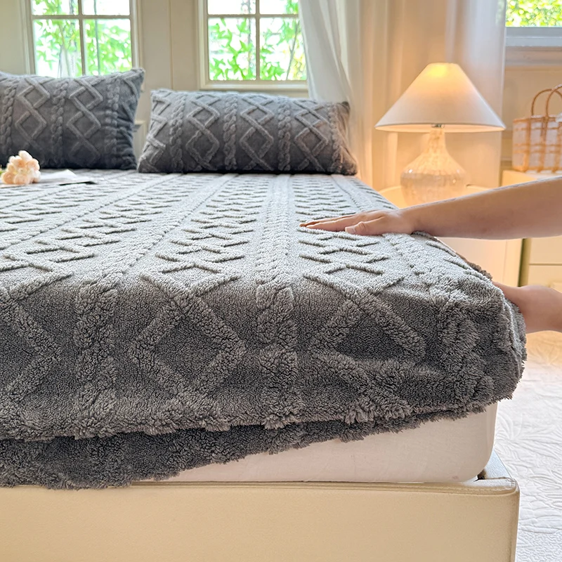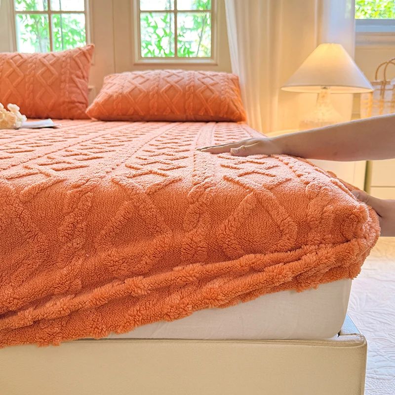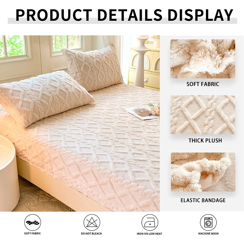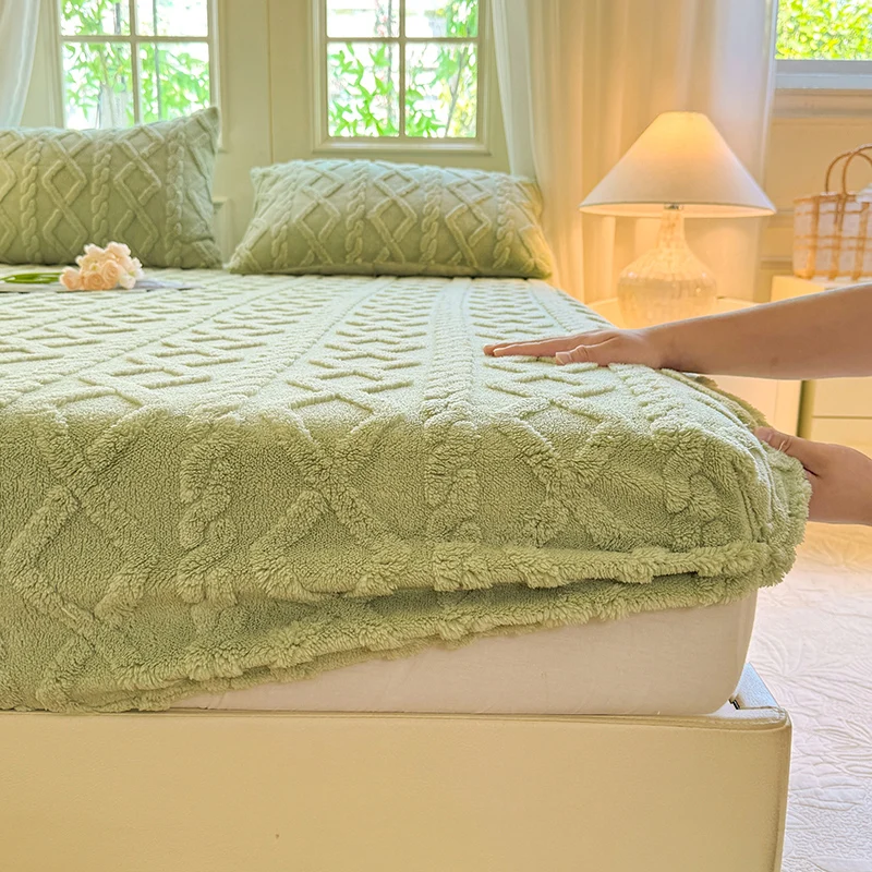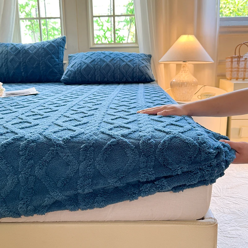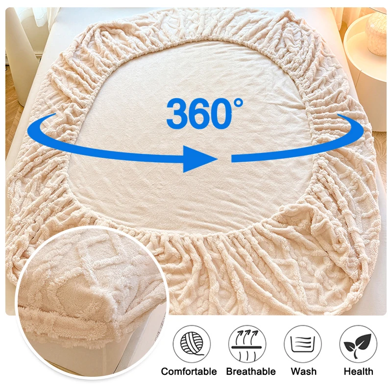 Velvet Mattress Protector Thicken Warm Winter Fitted Sheet Soft and Breathable Plush Elastic Bed Cover Mattress Cover Bedspread