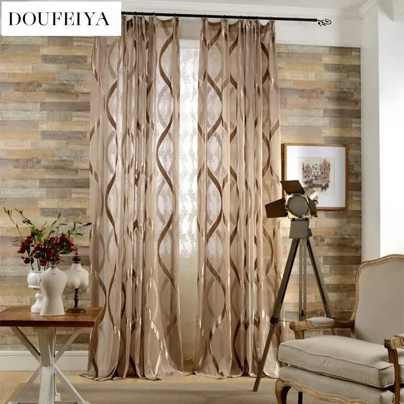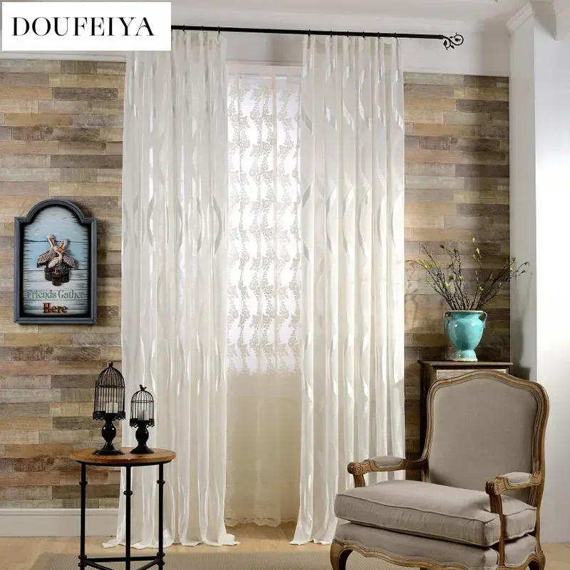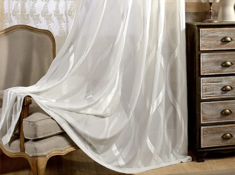 White Shiny Tulle shCurtains for Living Room Wavy Stripes Curtains Modern Solid Decoration Balcony Voile Window Treatments