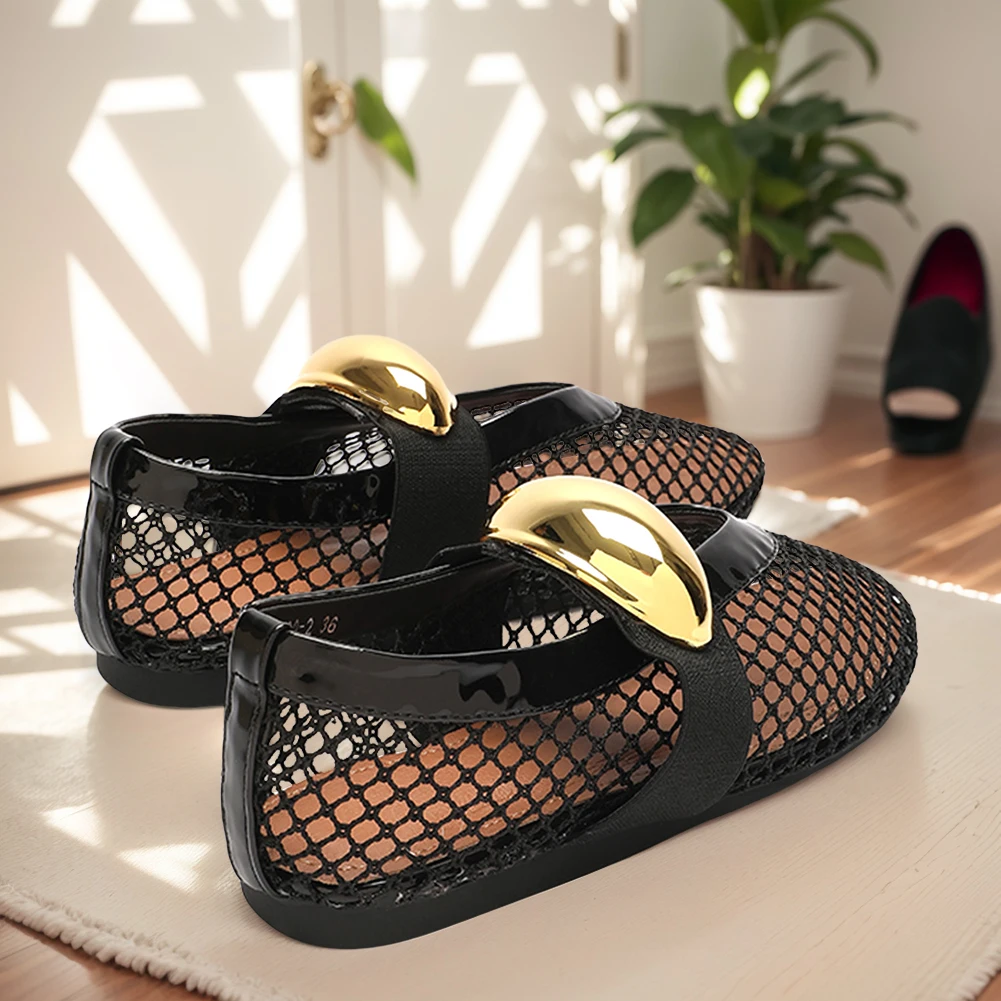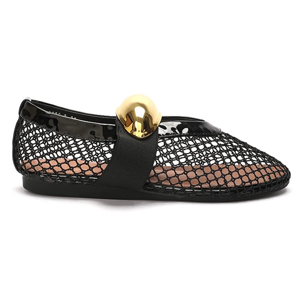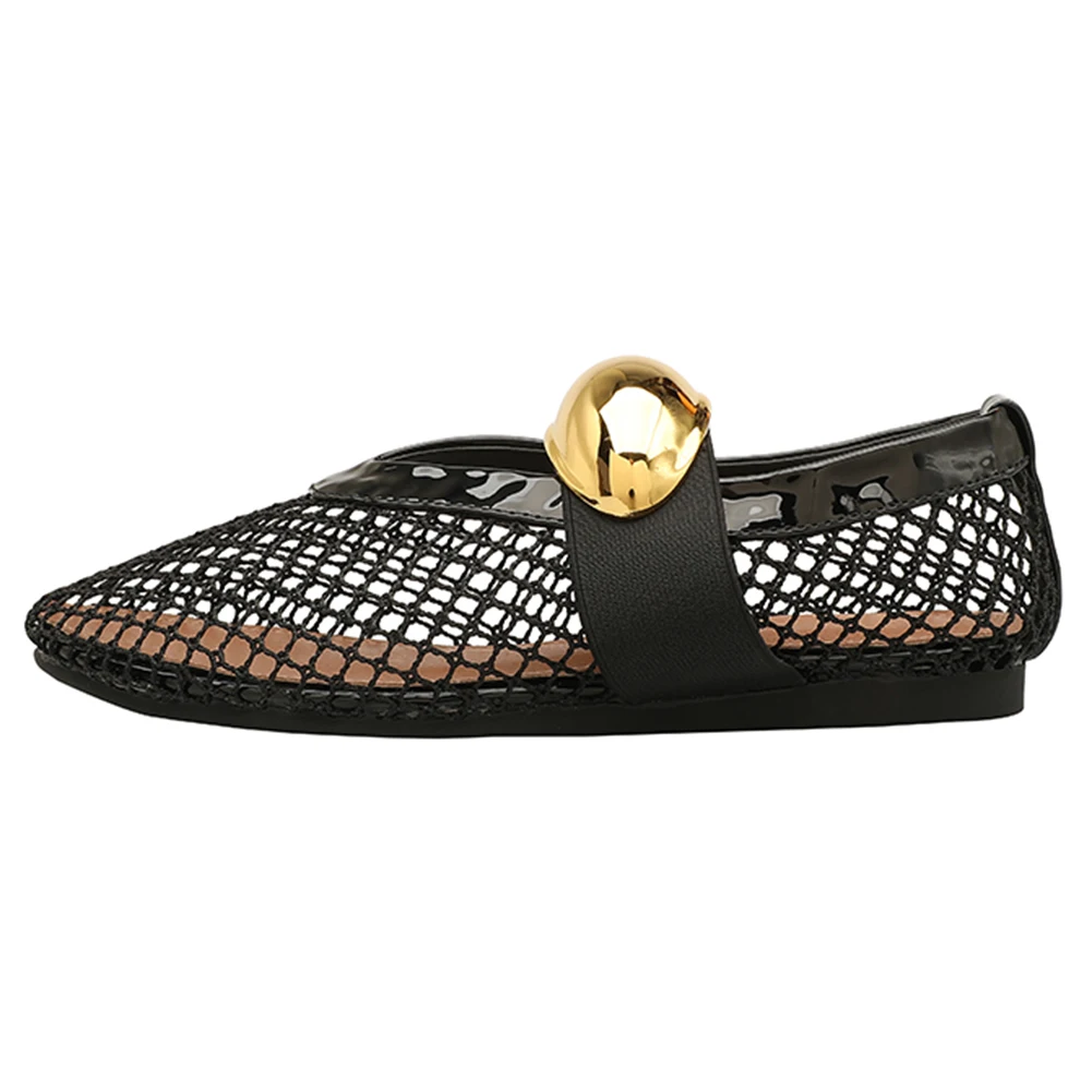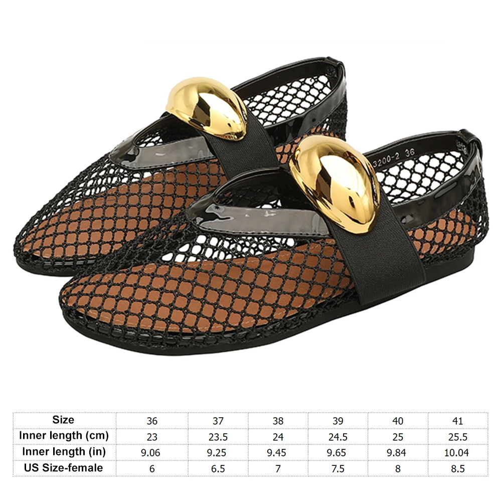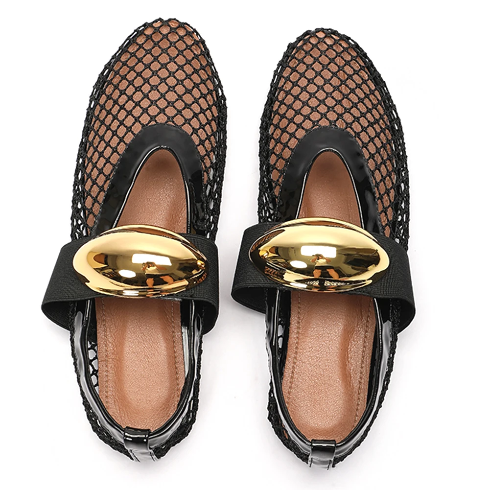 Women Mesh Ballet Flats Fishnet Ballerina Flats Comfortable Slip On Ballerina Shoes Buckle Strap Round Toe Ballet Shoes for Outdoor Travel
