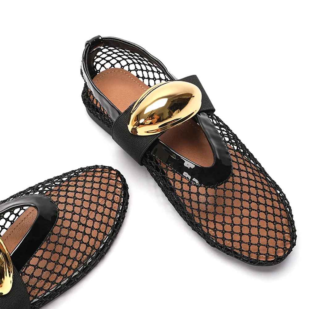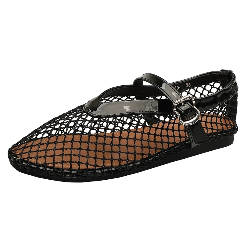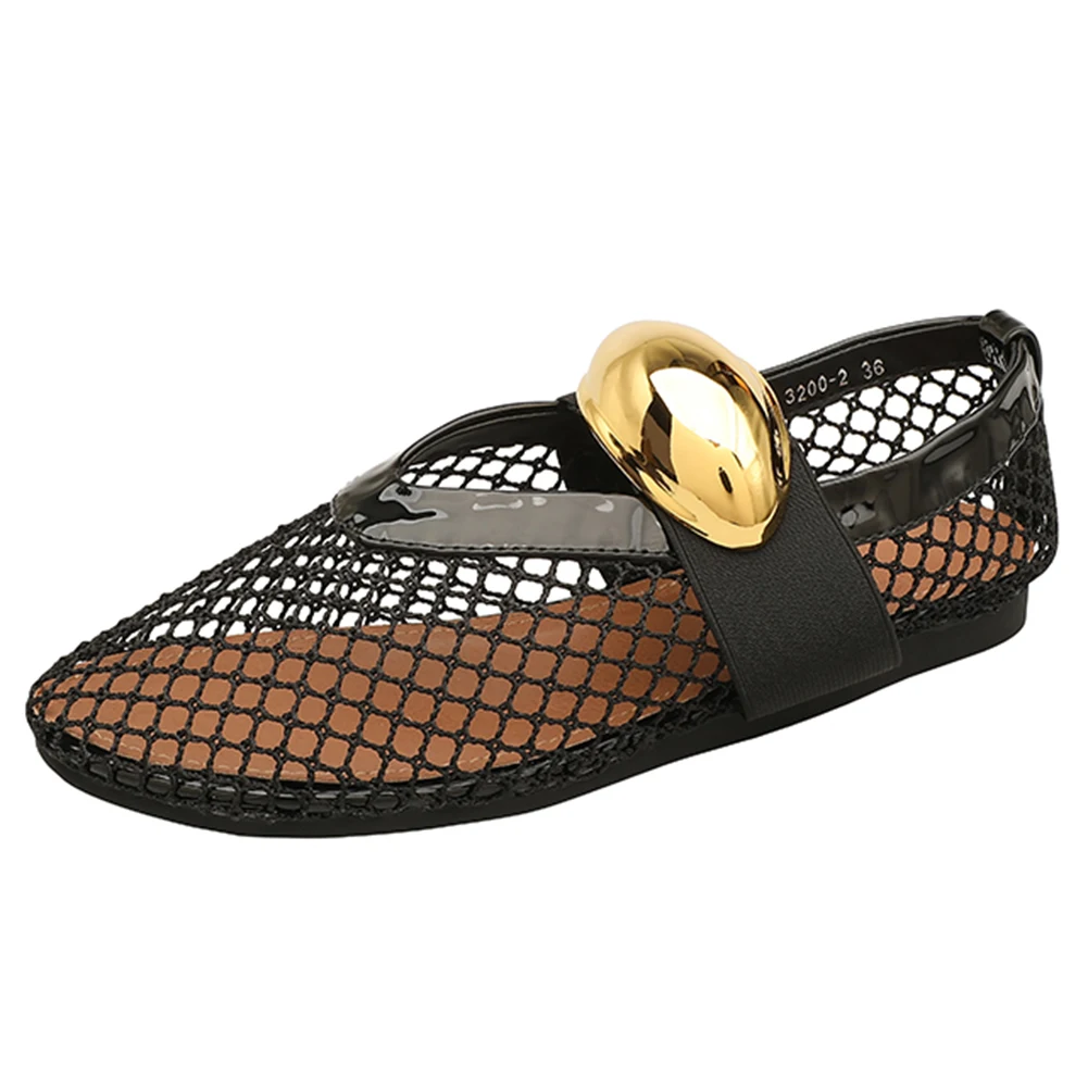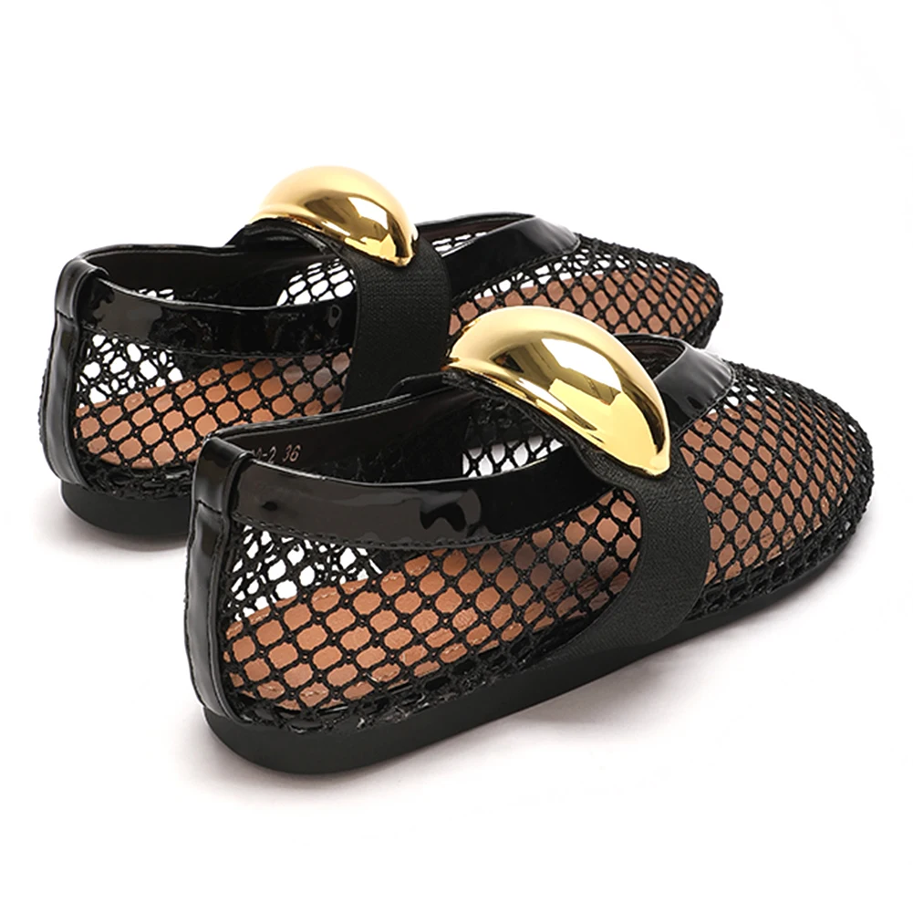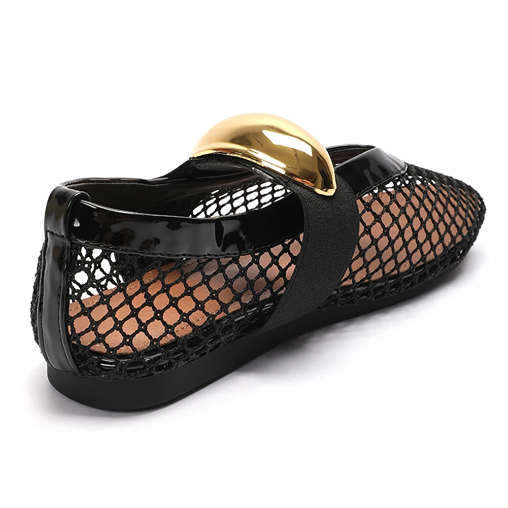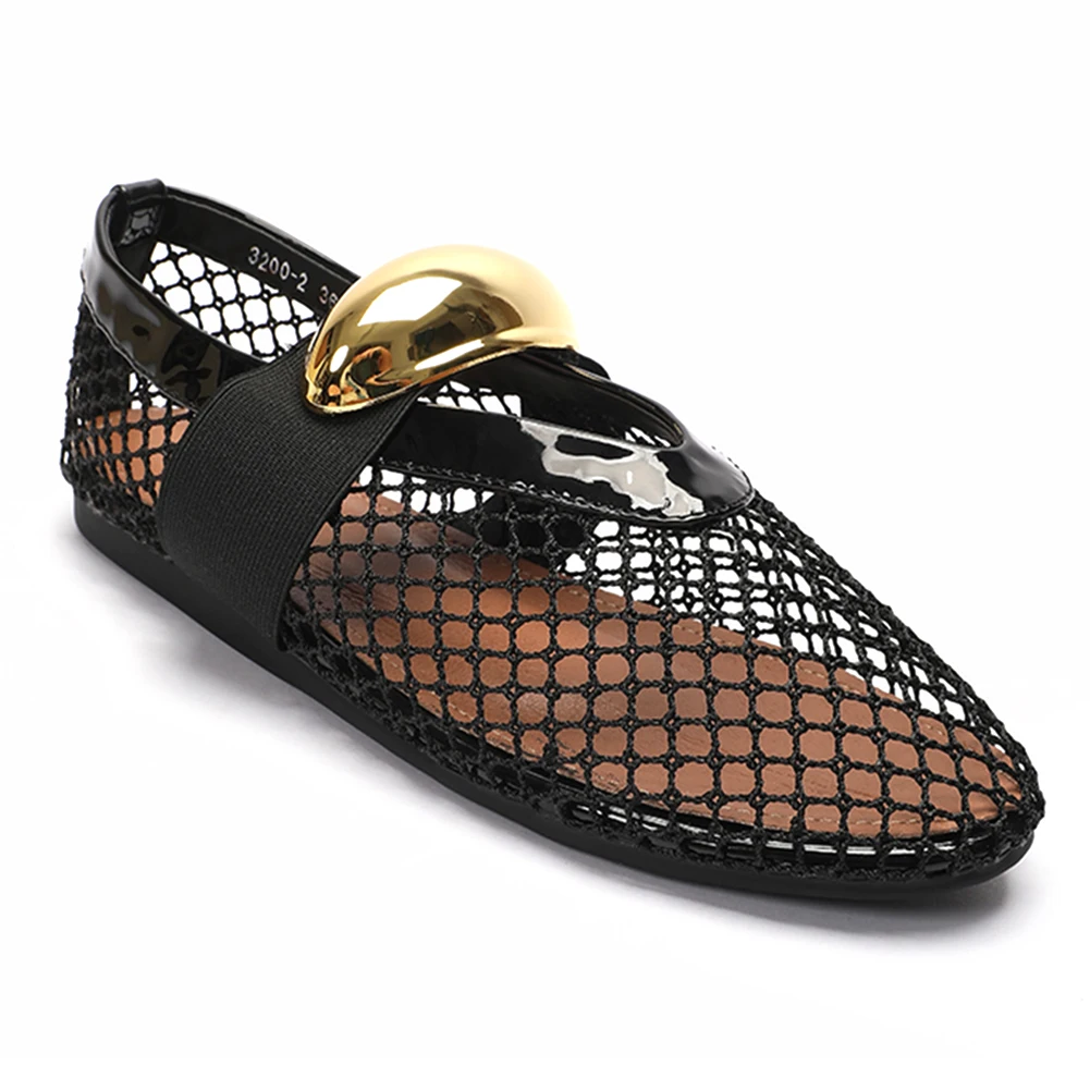 Women Mesh Ballet Flats Fishnet Ballerina Flats Comfortable Slip On Ballerina Shoes Buckle Strap Round Toe Ballet Shoes for Outdoor Travel