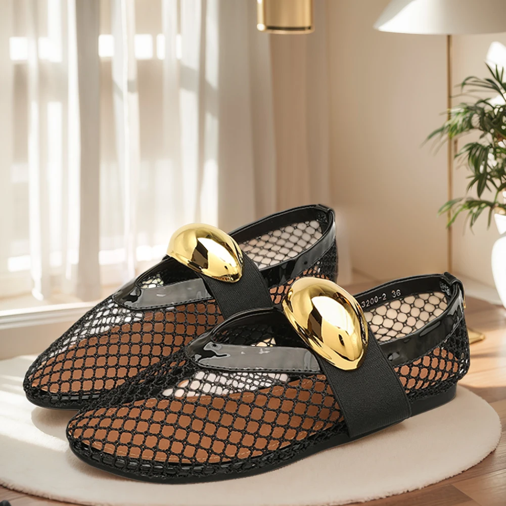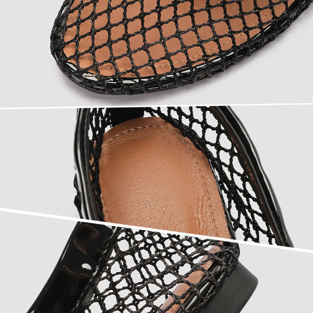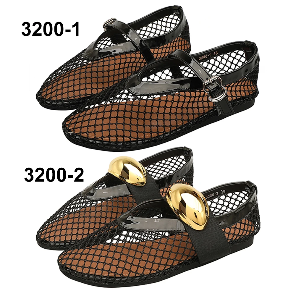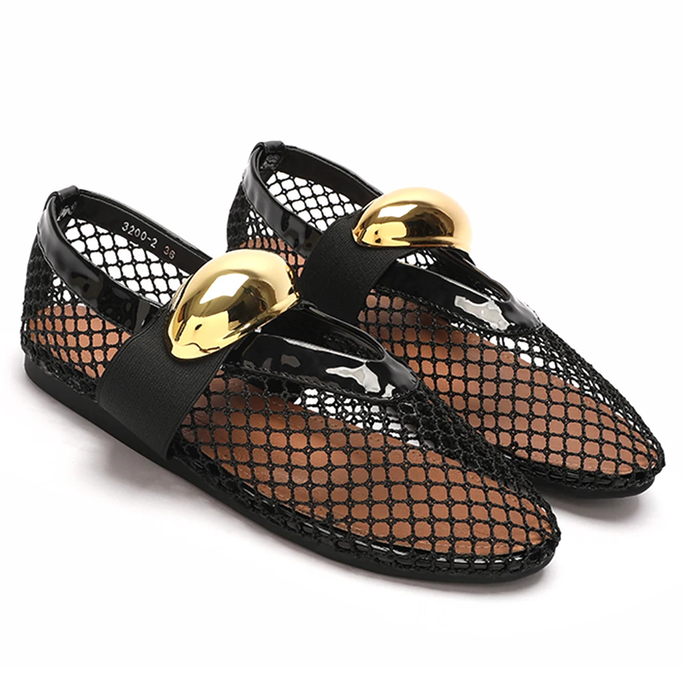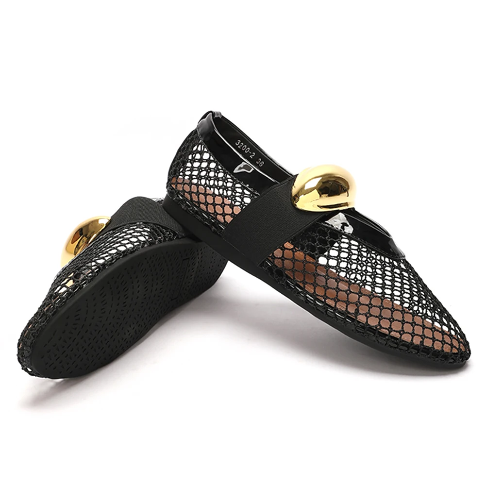 Women Mesh Ballet Flats Fishnet Ballerina Flats Comfortable Slip On Ballerina Shoes Buckle Strap Round Toe Ballet Shoes for Outdoor Travel